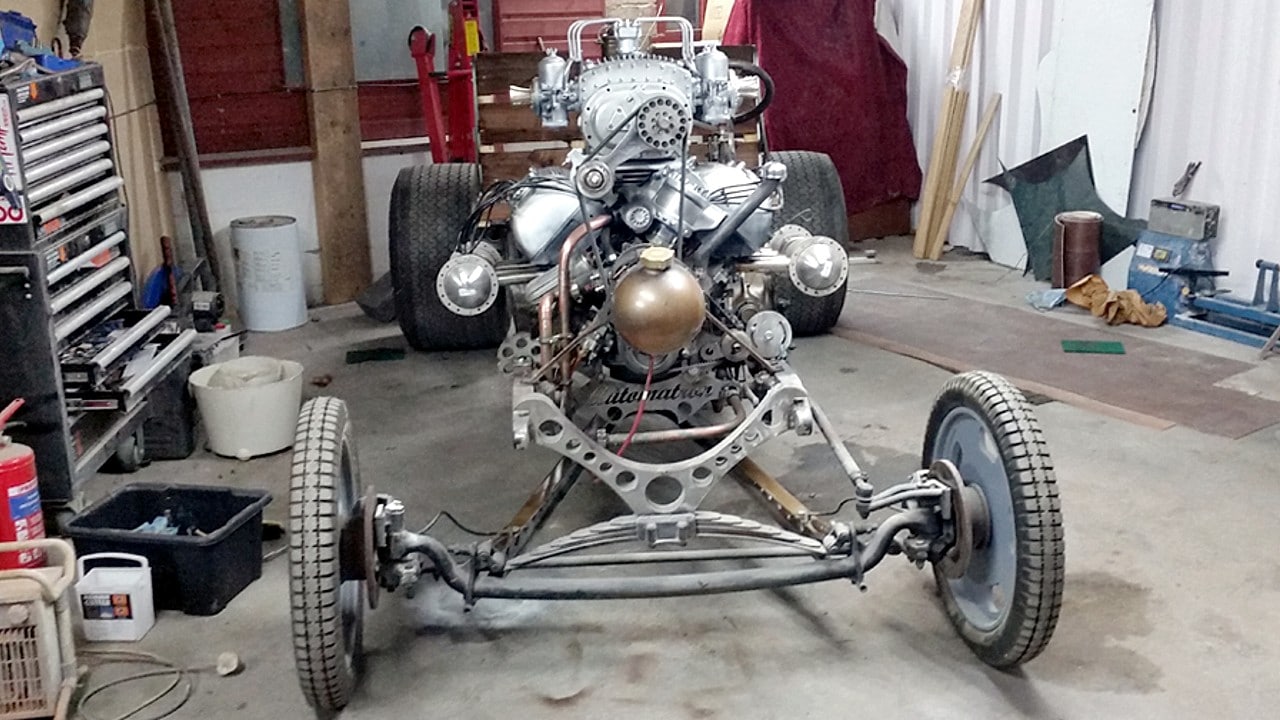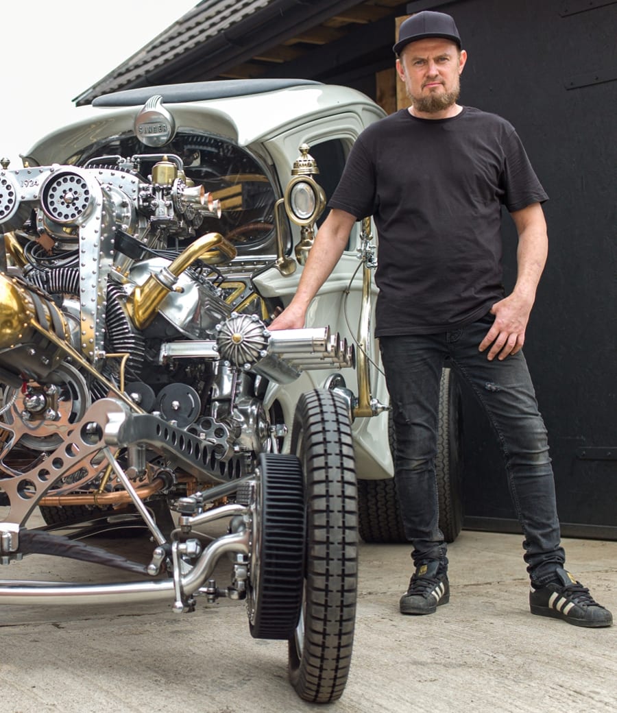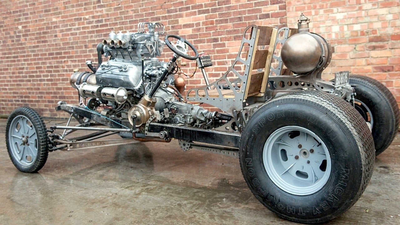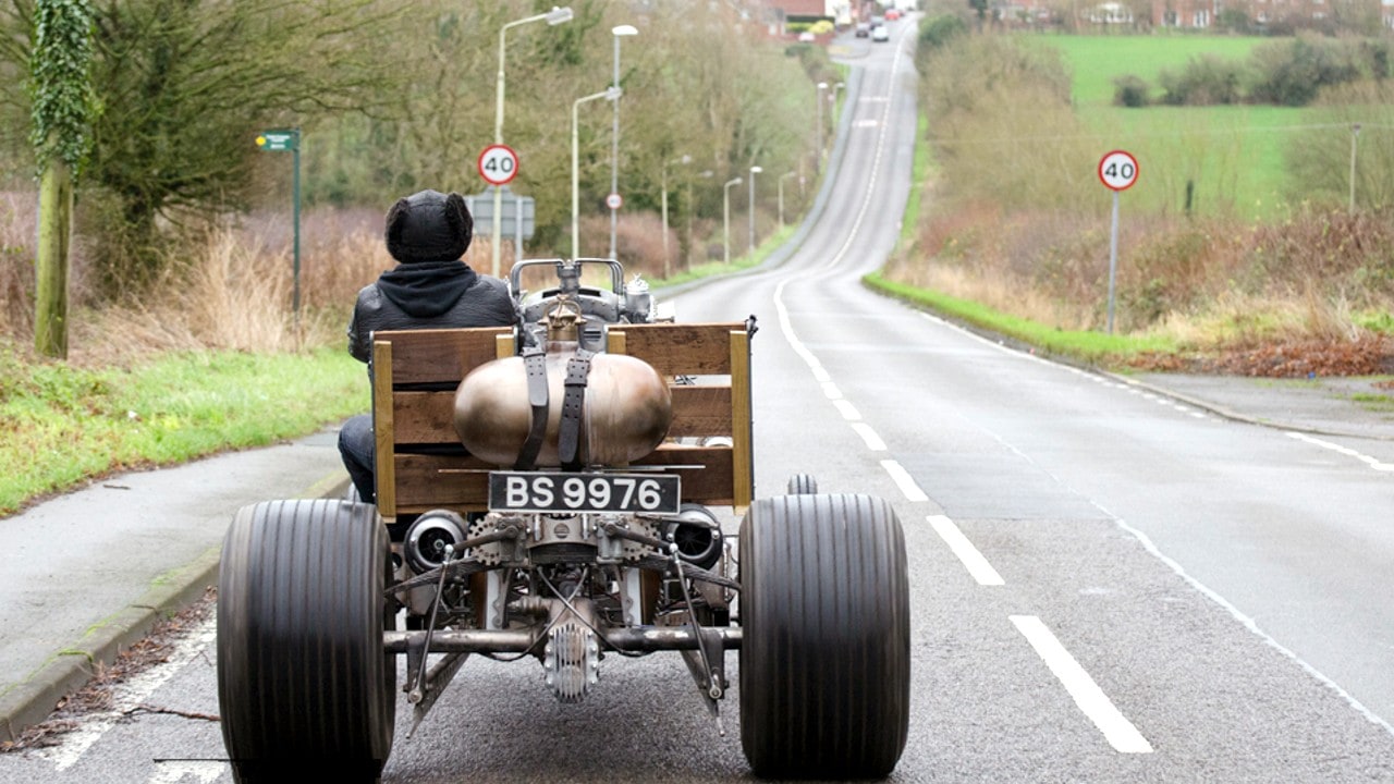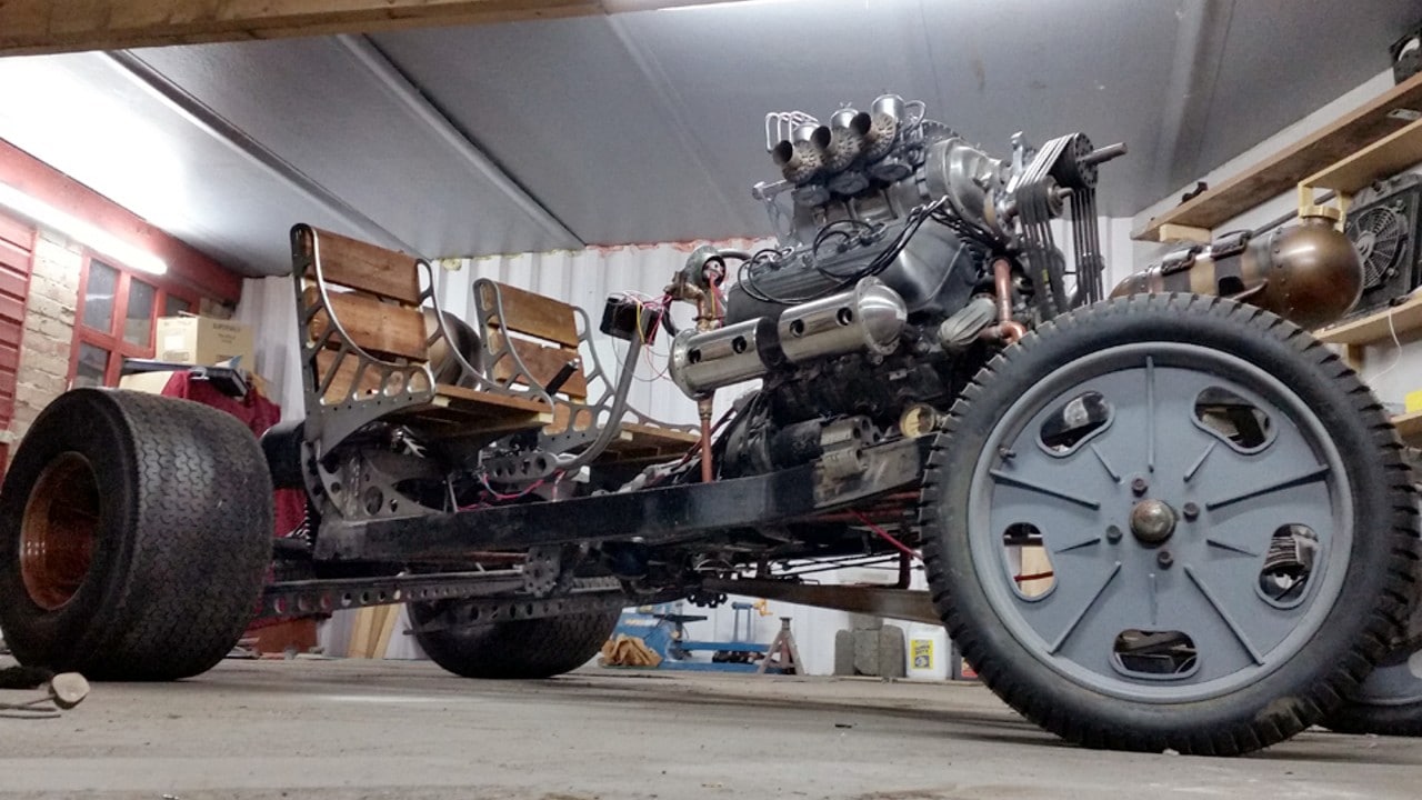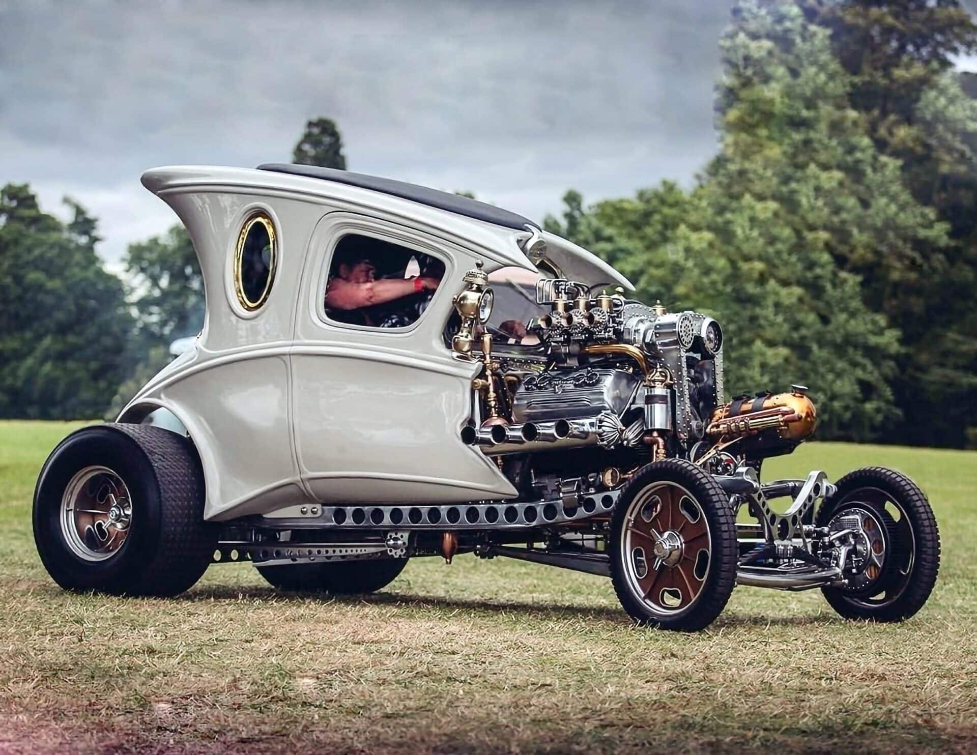 C’est un Hot-Rod qui n’est pas issu des mouvances connues, telles “Street-Rod”, mais du “SteamPunk”, il est équipé d’un V8 suralimenté et utilise “un engin de commutation” issu d’un bombardier Lancaster pour démarrer, les roues avant proviennent d’une Austin-7 et il a utilisé les plus grands pneus de rue légaux au Royaume-Uni d’Angleterre pour les roues arrière…, aucune dépense épargnée : ce véhicule est la création la plus couteuse entreprise par Paul Bacon…