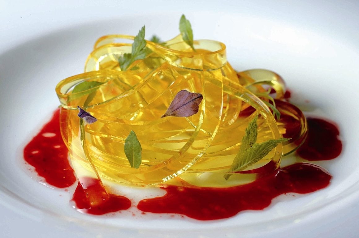 Parmi les mets les plus insolites : une gélatine de méduse aux câpres…, les fameux raviolis d’anémone de Méditerranée à la cervelle de lapin du Var…, un flan d’olothuries (limace, dite concombre de mer) aux œufs de merlu… et des tagliatelles de laitue du Golfe de St-Tropez à l’infusion de salicorne.