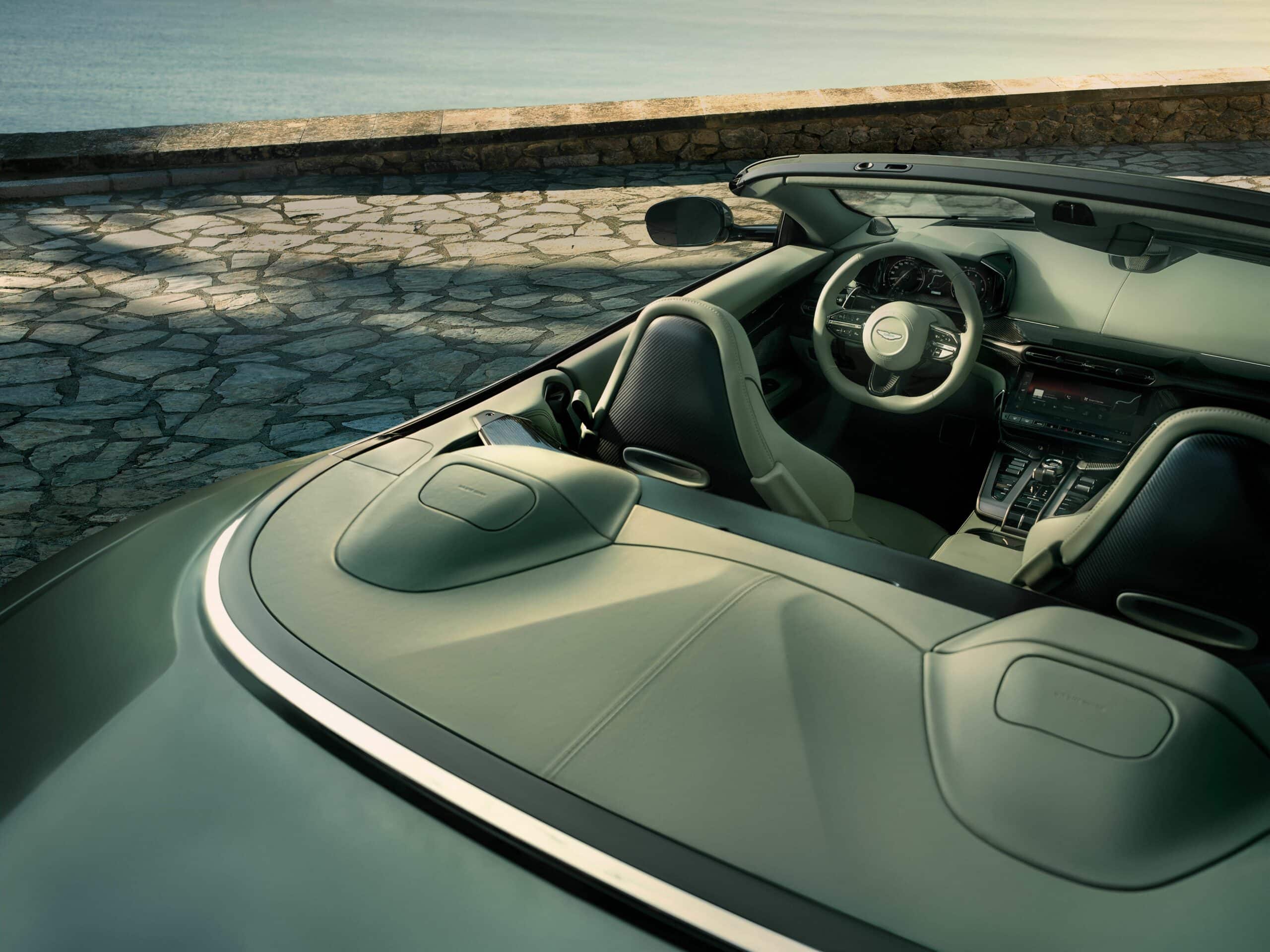 Le cabriolet utilise le même V-12 biturbo de 5,2 litres qui développe des pointes de 824cv et 737 lb-pi, avec tous les efforts envoyés à l’essieu arrière par le biais d’une boîte de vitesses automatique à huit rapports et d’un différentiel à glissement limité à commande électronique. Les chiffres d’Aston (probablement conservateurs) indiquent que le temps de 0 à 60 mph de 3,3 secondes de la Volante la rend un dixième plus lente que le coupé, mais avec une vitesse de pointe identique de 214 mph revendiquée pour les deux styles de carrosserie. Mouaihhhh !