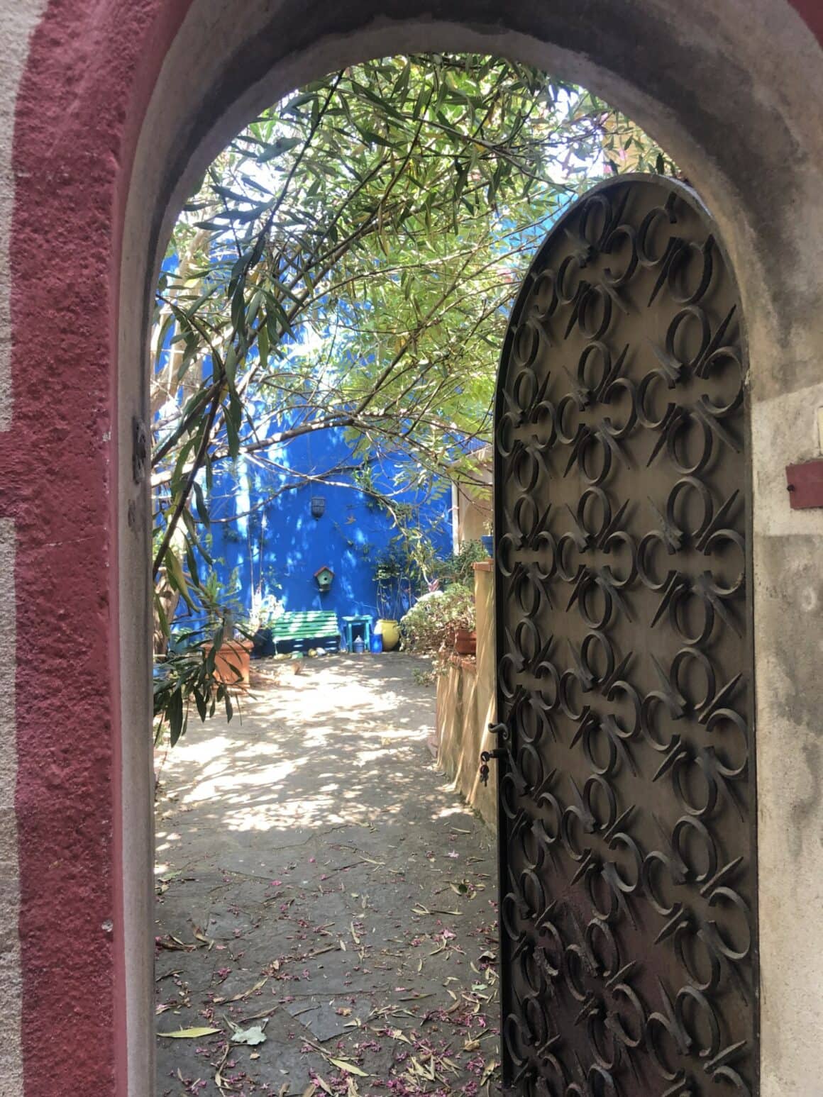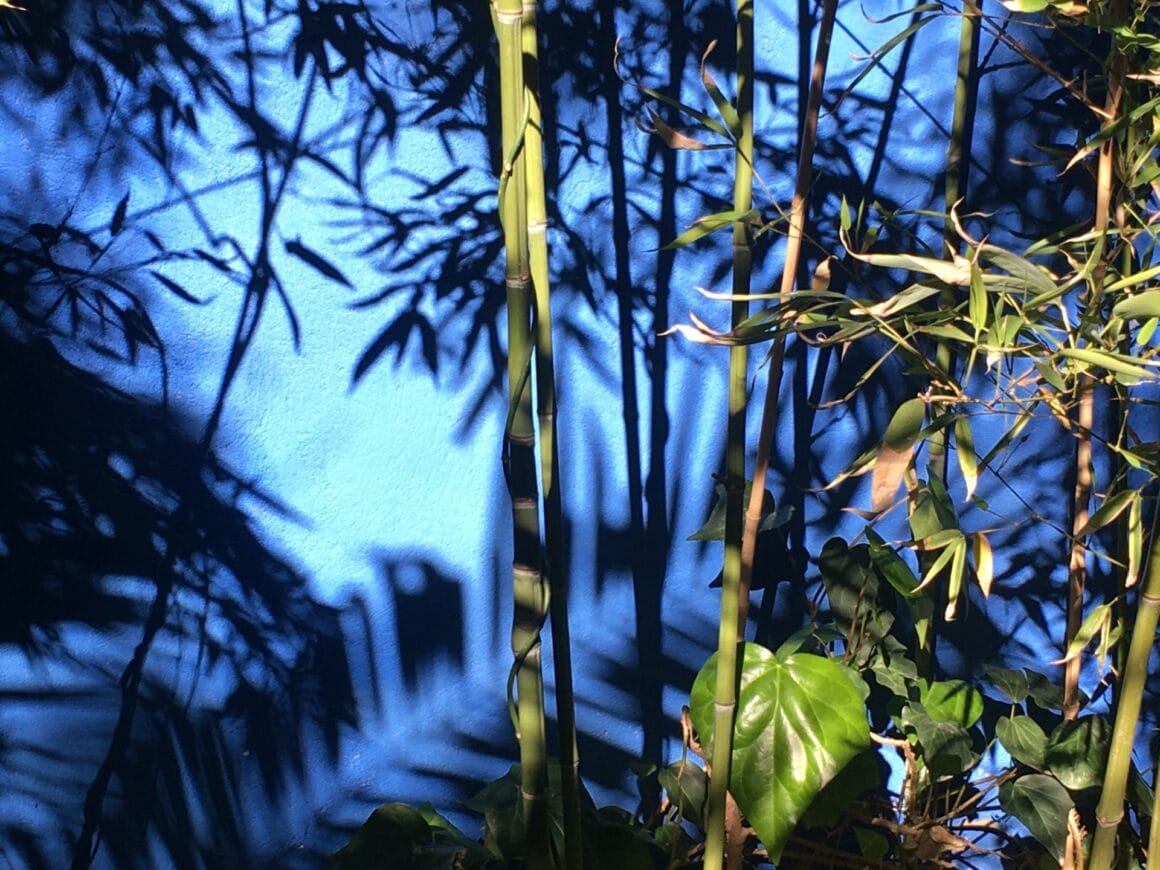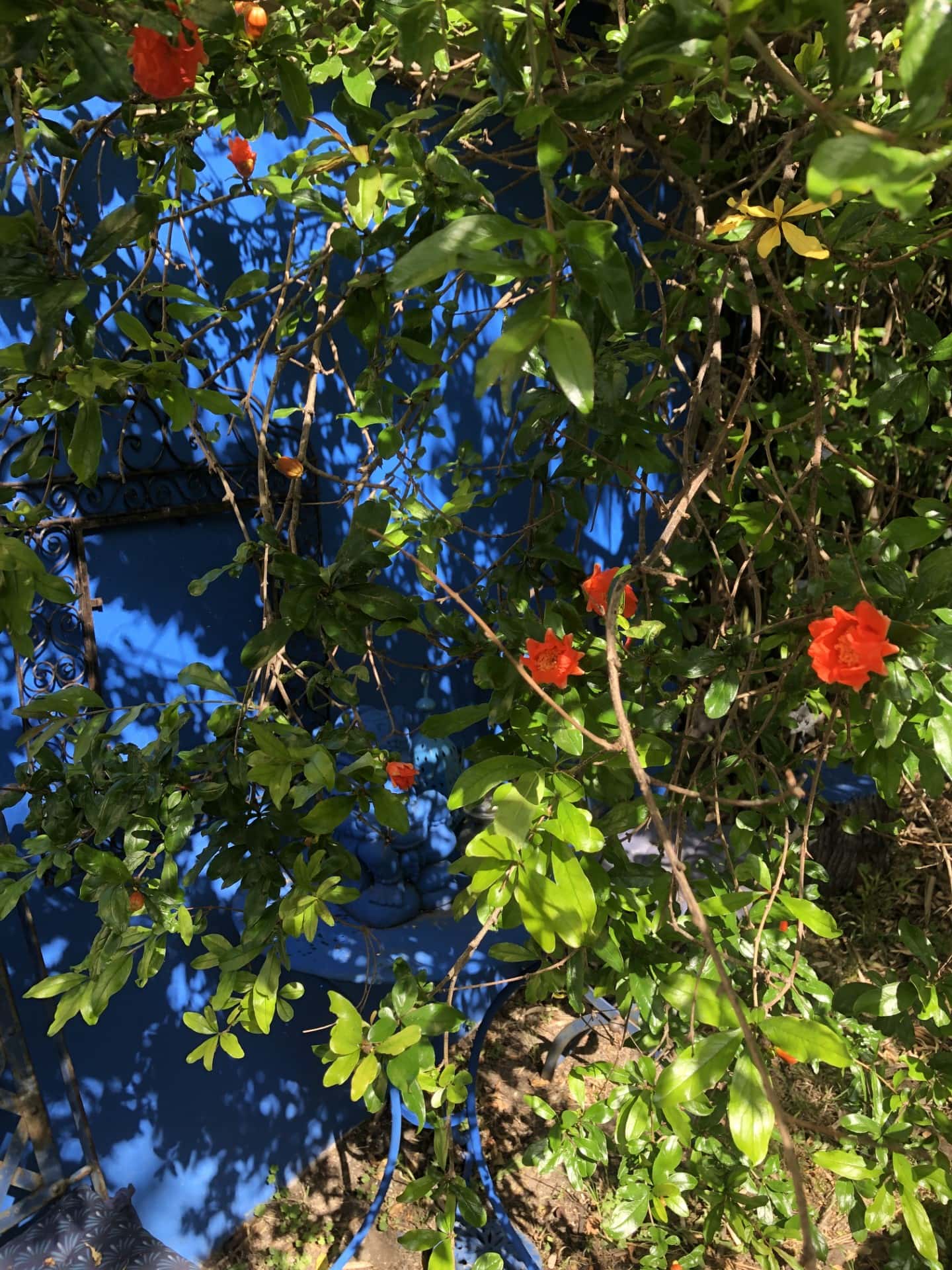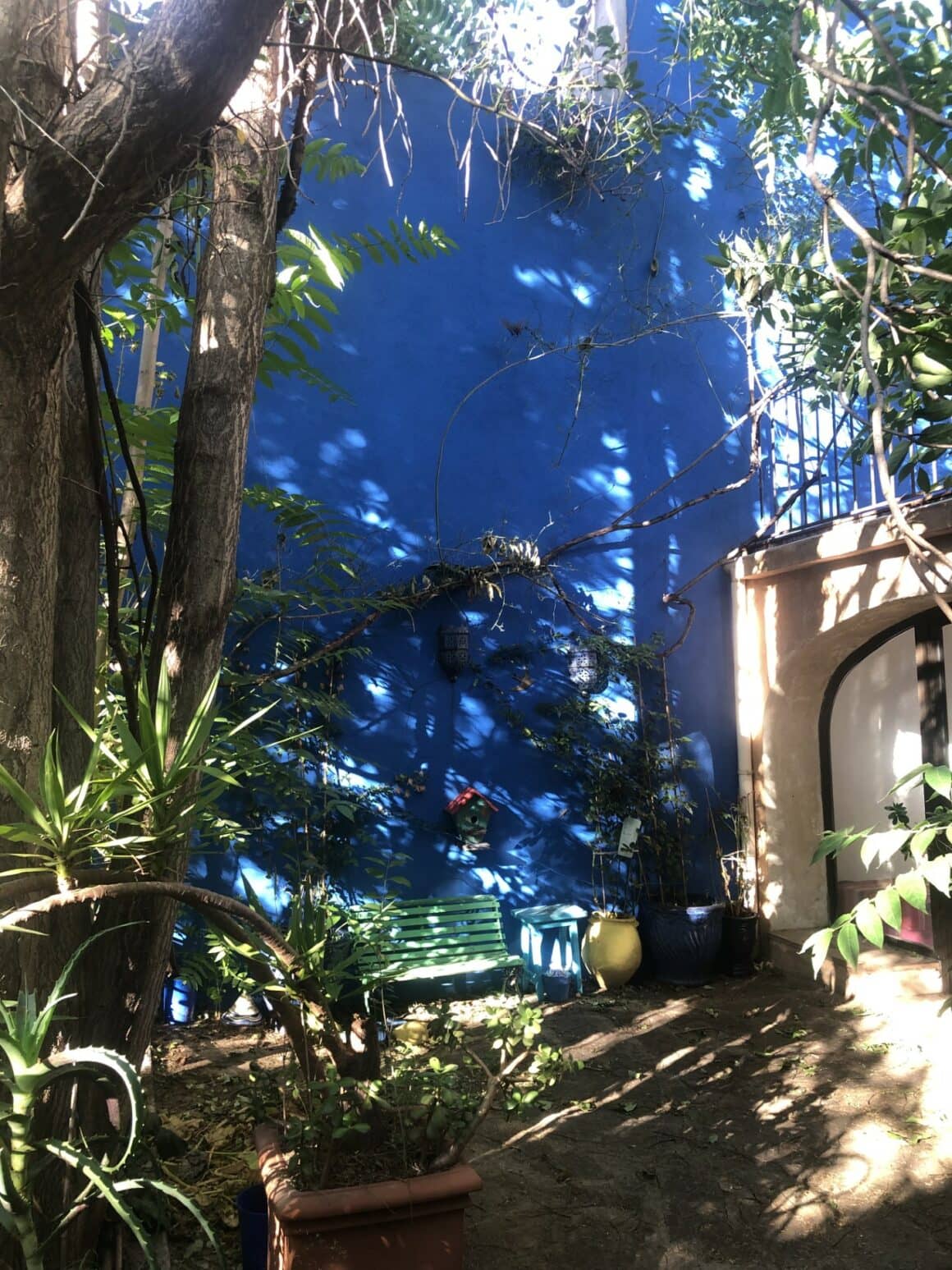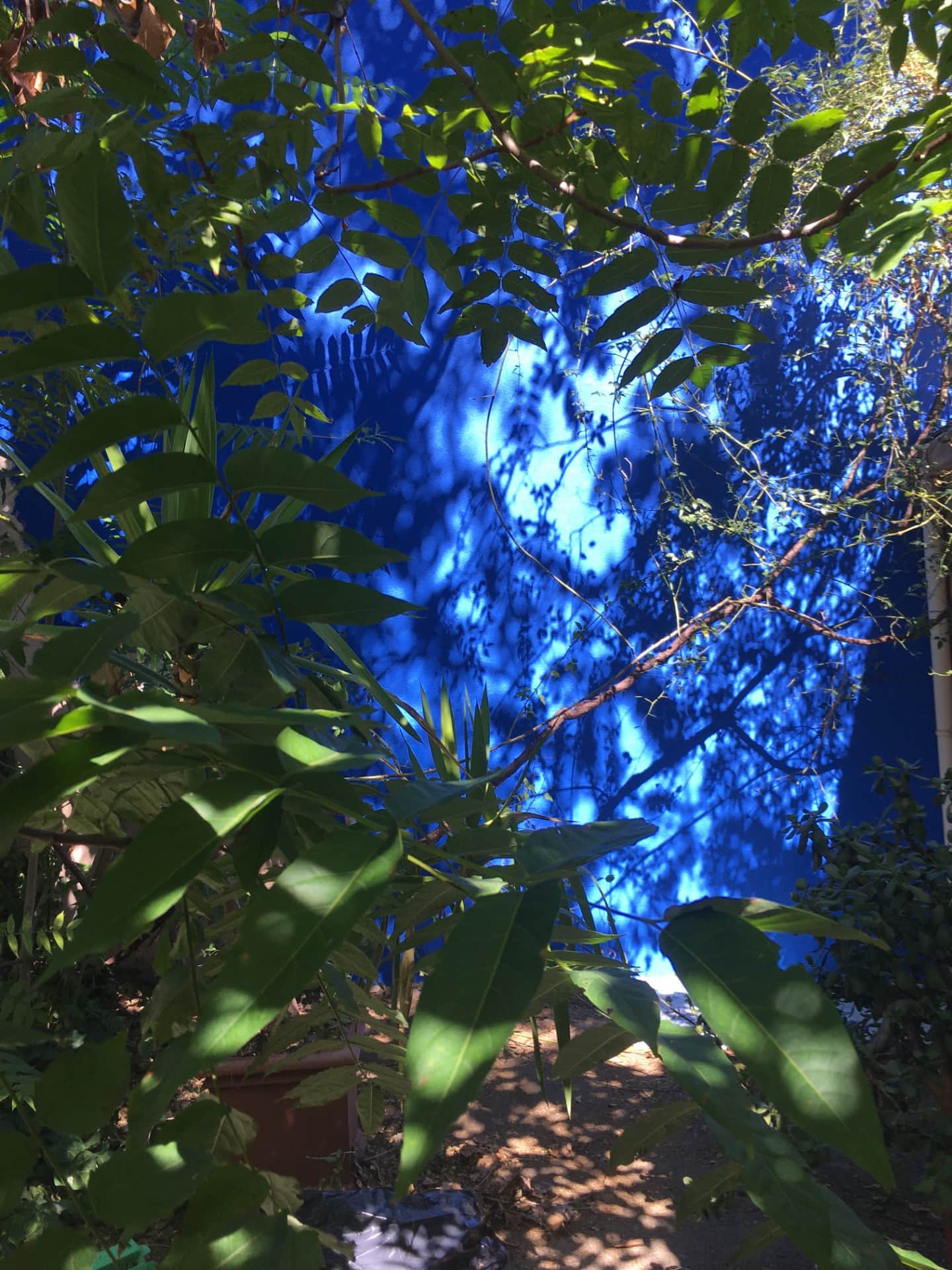 Il est orné de fontaines, bassins, jets d’eau, jarres en céramique, allées, pergolas … En 1937, l’artiste crée le bleu Majorelle, un bleu outremer / cobalt à la fois intense et clair dont il peint les murs de sa villa, puis tout le jardin pour en faire un tableau vivant qu’il ouvre au public en 1947.