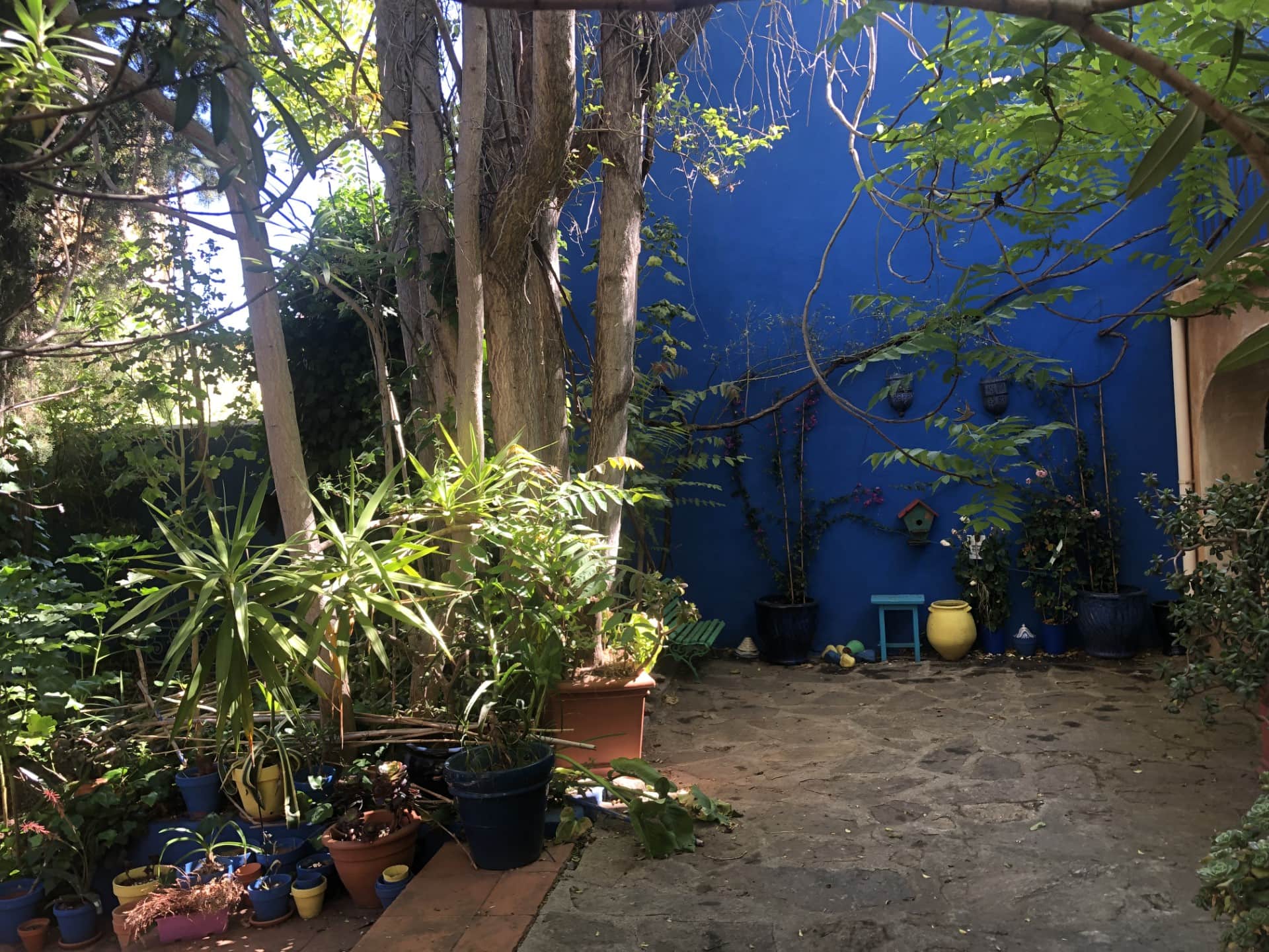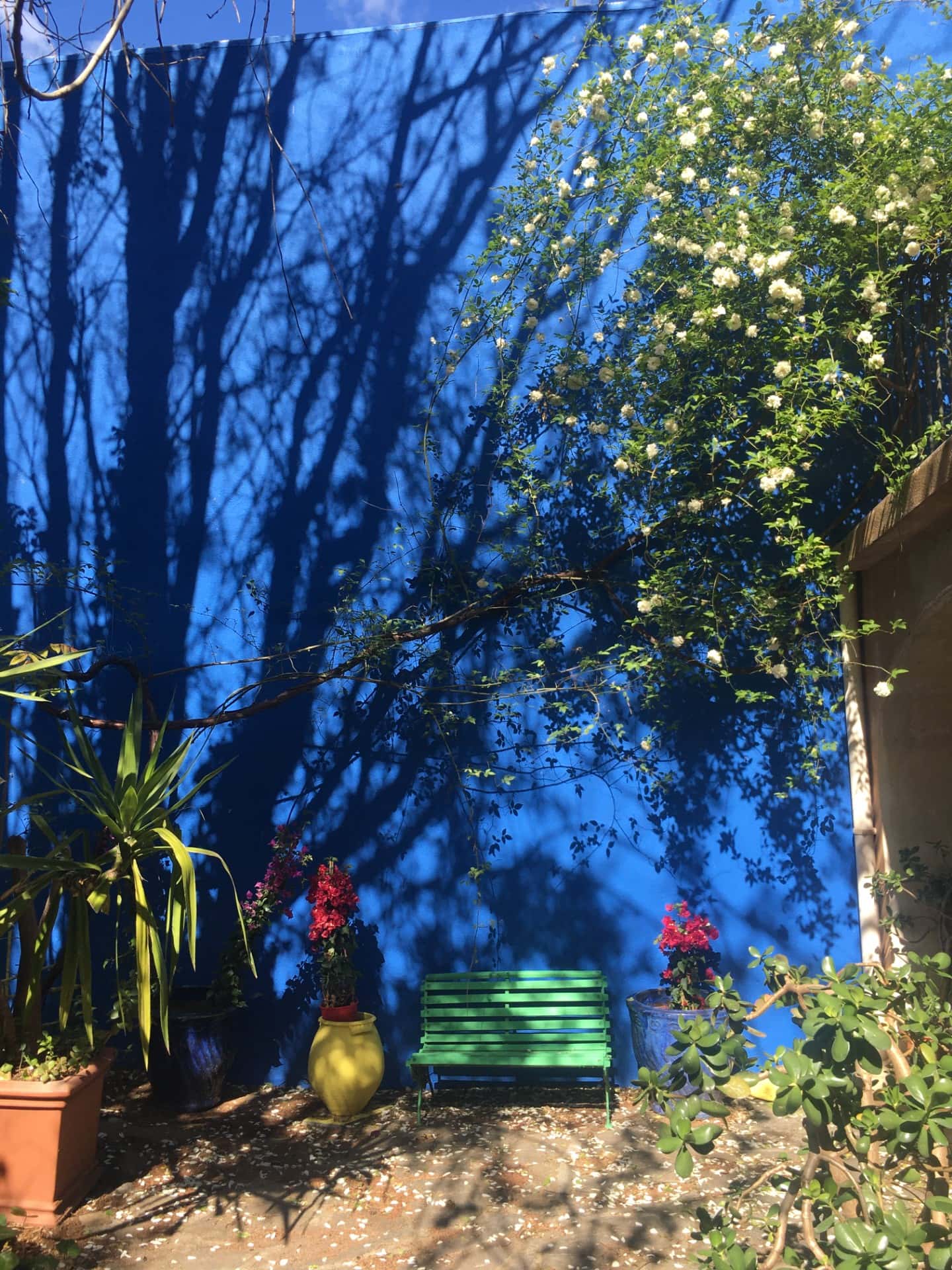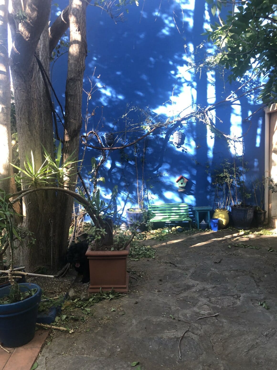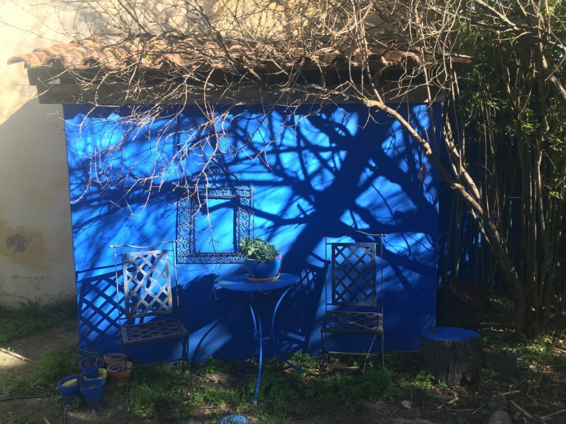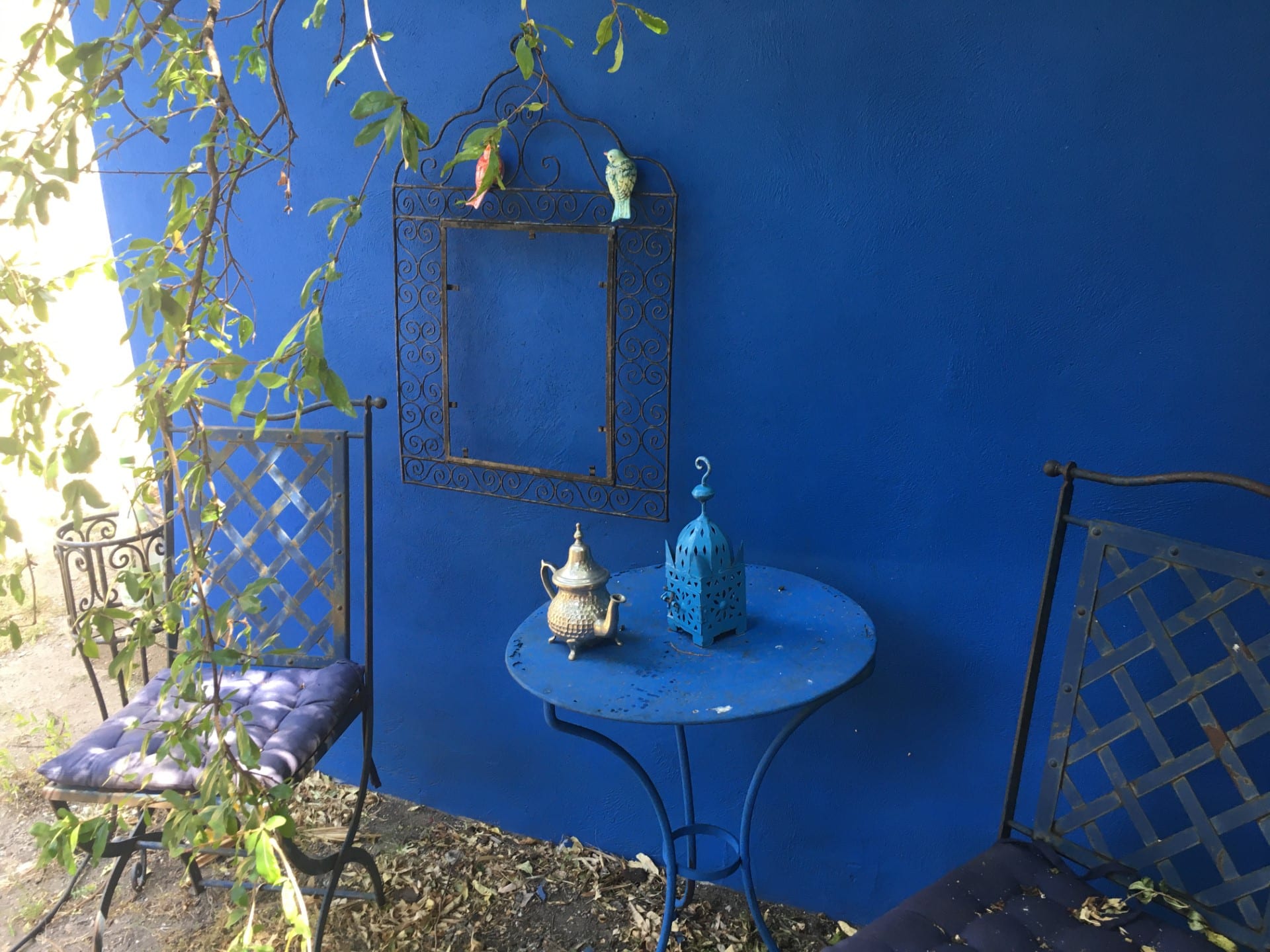 Nous, Valérie, Blacky et moi, avons oeuvré celui-ci dans le style majorelle d’inspiration Sahara… Plutôt qu’aller au Sahara, on l’a refait rien que pour nous… Le jardin Majorelle (en berbère : ⵓⵔⵜⵉ ⵎⴰⵊⵓⵔⵉⵍ ; en arabe : حديقة ماجوريل) est un jardin botanique touristique d’environ 300 espèces sur près d’1 hectare.