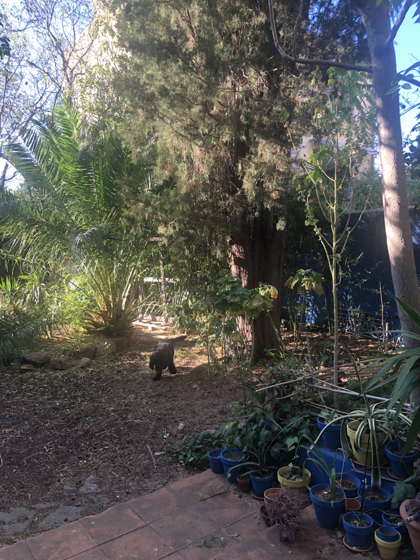 Bref, voilà, Valérie, Blacky et moi avons eu l’idée de nous recréer un jardin Majorelle à Saint-Tropez avec un Hot-Rod en son juste milieu… C’est cool et secret, c’est un p’tit coin d’Paradis…