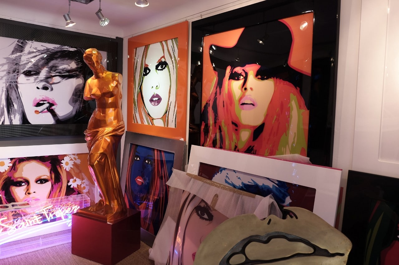 Il se fait que ce type de “marché” est florissant à Saint-Tropez ou fleurissent dès le printemps toute une faune de peintres qui proposent aux touristes hallucinés, du “Bardot” partooooouze…, à toutes les sauces, styles, et formats s’adaptant à l’importance des bourses…, la raison est que Bardot EST Saint-Tropez…, mais suivant les manifestations organisées, les “artistes” exposent aussi des Harley’s, des Porsche’s et des Voiliers…, c’est donc vers “ailleurs” que je me suis laissé téléguider, plus précisément à Paris ou œuvre Démonia qui fait dans le McQueen et le Johnny…