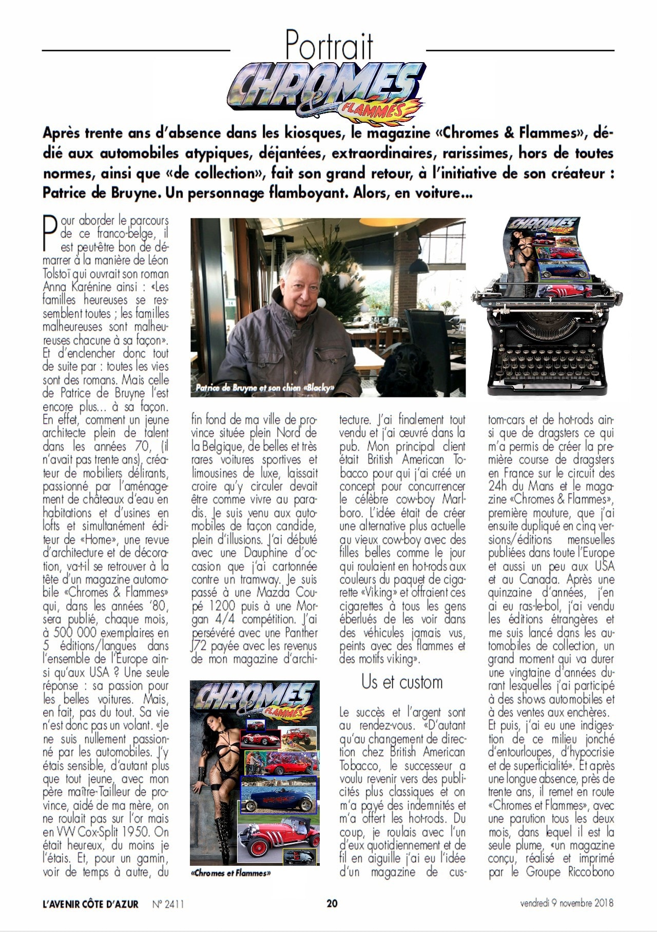 Je relance mon vieux mag’Chromes&Flammes, modernisé, 1er sortie fin octobre 2018, etc… et ensuite tous les deux mois… J’ai prévu ensuite dans le N° 2 un article sur McQueen… et à son sujet, cet ami commun m’a dit que vous seriez peut être intéressée que je “cause” de vous avec quelques photos de vos œuvres…
