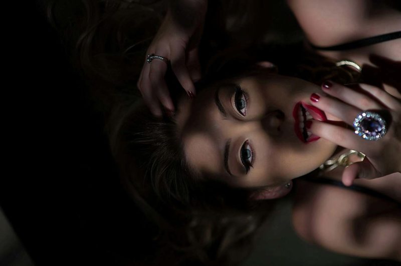 Son rouge à lèvres ocré renforce le dessin d’une bouche qui m’inciterait à me rendre en marchant sur les genoux jusqu’à Saint-Claude pour qu’elle m’y fasse une pipe (d’écume).