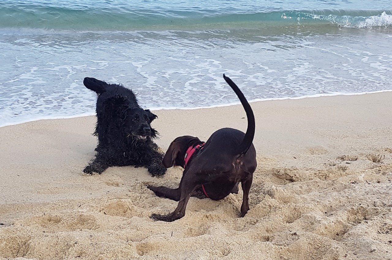 Une prompte volte d’orthodoxe m’apprend que c’est un chien brunââââtre qui s’intéresse de cette manière appuyée à mes orifices naturels, tandis que mon Blacky, renifle son trou-du-cul…