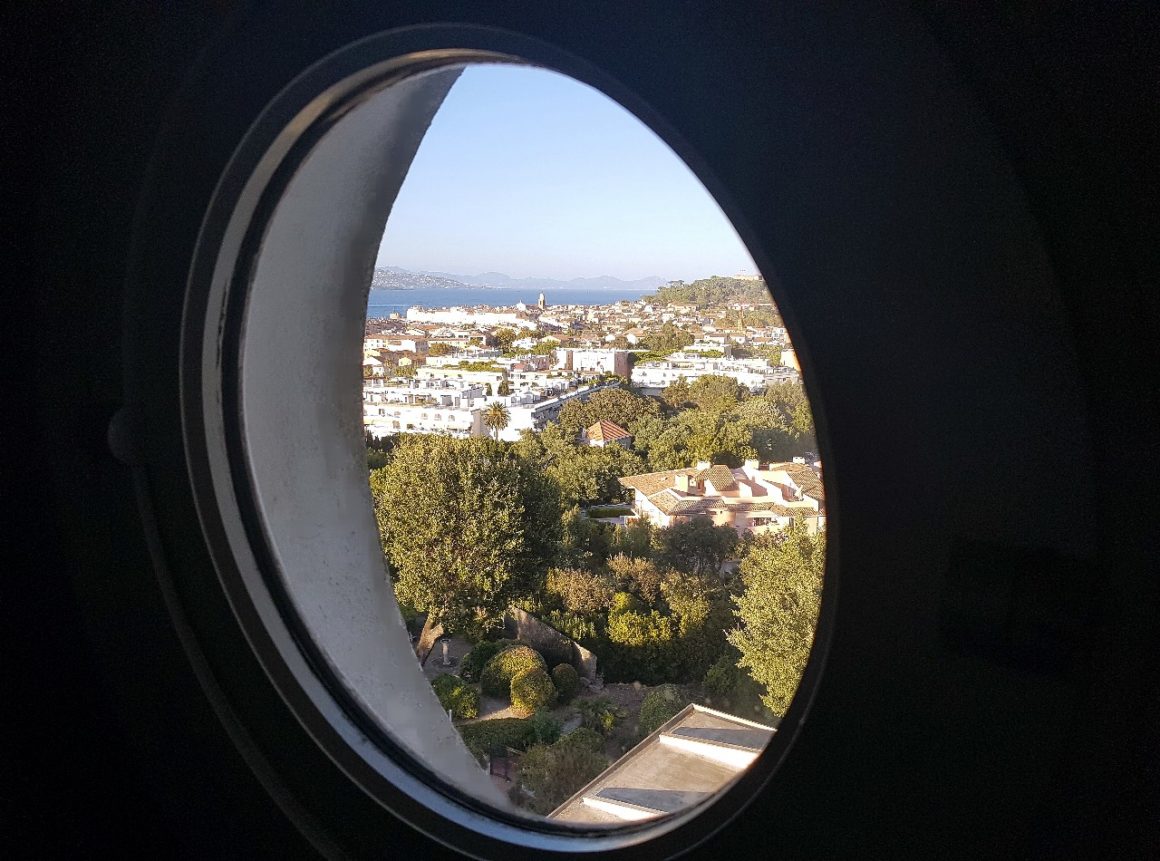 Le grand escalier en briques rouges, “sublime et grand”, se dressait semblable à l’accès d’un temple aztèque…, mais ce qui étourdissait, une fois “à bord” et “au plus haut”, c’était le panorama aérien depuis les terrasses, l’impression d’être à bord d’un paquebot, un sentiment accentué en jetant un œil depuis le “hublot” servant de fenêtre à chacune des pièces “toilettes” des appartements…, le bonheur de se soulager avec une telle vue confinant au subliminal !