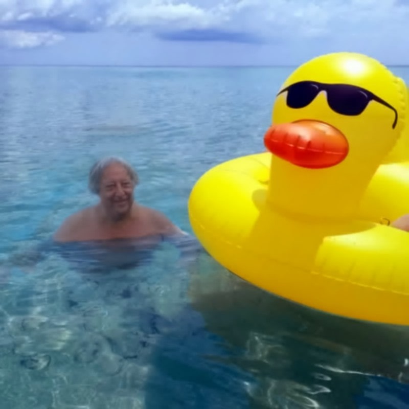 Quand je l’ai rencontré, à Saint-Tropez, en 2017 il n’avait plus à courir le monde, désormais celui-ci gravitait autour de lui. Il débarquait parfois d’un hélico, de temps-à-autre d’un Riva, souvent d’une Cobra, d’un Hot-Rod enflammé ou d’une Bentley, simplement pour aller saluer quelques amis dont il ne reste plus maintenant que leurs légendes pailletées. Les batailles de champagne et autres frasques qui se déroulaient sur les plages branchées le laissaient indifférent, il préférait passer rêvasser dans notre nid d’aigle peuplé d’œuvres magistrales, le monde n’était alors que bonheur dans la piscine vue méditerranée ou il s’amusait avec son fidèle et joyeux Cocker Blacky à barboter avec un canard géant tout en dégustant un Petrus millésimé ’49, année de sa naissance… La terre entière aurait voulu défiler là, mais il aimait trop la solitude, il détestait les clameurs… peu à peu il s’enfuyait des gens… mais avec lui j’ai toutefois croisé de grands collectionneurs d’automobiles.