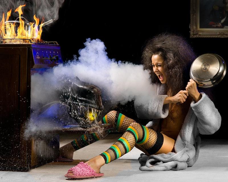 Passe encore que l’Alien sorte des écrans TV…, mais d’un four de cuisson, là, c’est totalement fou… (j’aime…, mummmmm ) !