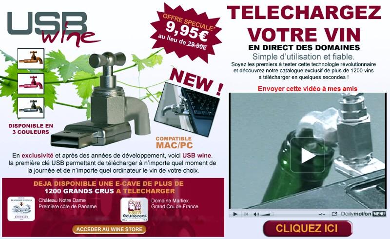 En tant que spécialiste des gadgets débiles, je me dois donc de l’ouvrir sans plus attendre. J’y découvre une clé USB qui permet de télécharger du vin !