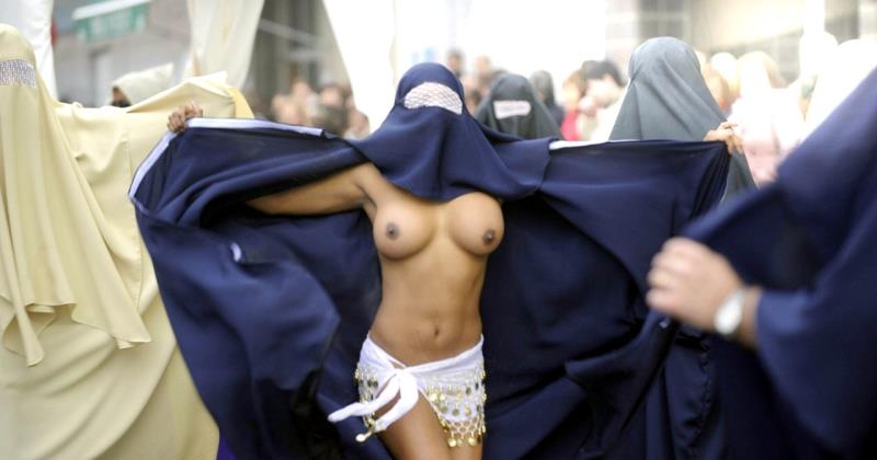 En novembre 2014, la société de production porno BangBros a sorti une vidéo dans laquelle on peut voir Mia Khalifa, une chrétienne libanaise, et Juliana Vega, une Cubaine, jouer le rôle d’une fille et d’une mère musulmane qui fricotent avec le petit copain motard de la fille, le tout en hijab.