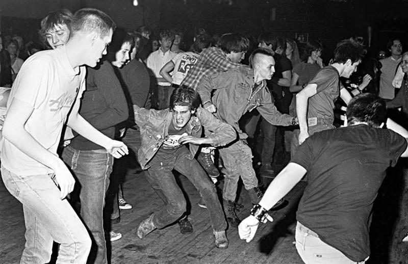 Soudain, un type manque de peu de me péter le genou en plongeant du cul alors qu’on le bouscule. Je lui fous deux trois coups de pied dans les dents comme il est à terre pour marquer le coup, la prochaine fois il fera gaffe, l’enculé… Vicious vient d’éclater sa basse sur le crâne d’un pauvre connard du premier rang… Il est rancunier le bougre ! çà commence à sauter de partout… Tout le monde est torché à la mauvaise bibine. Tant mieux c’est celle qui fait dégueuler plus loin et plus fort… Waaaaaaaaa, faut oublier ta vie ! T’es là pour te défouler vieille pute… çà va pogoter dur ! Je sautille sur mes deux pieds comme un con de cabris manchot. Je décoche un coup de boule à un morveux qui croise mon chemin. Je viens de lui enfoncer son pif jusqu’à la trachée. Il hurle comme une merde, je me casse après lui avoir broyé deux trois cotes… il est trop bruyant ce con. Je fais tournoyer mes poings garnis de quincaillerie. J’espère énucléer deux trois connards dans l’assemblée, mais ils ont tous des tronches molles de lopettes. Çà leur fait que des éraflures superficielles.