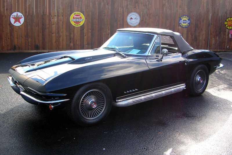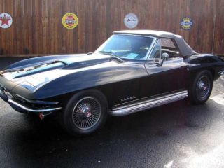 Il réapparaît un long moment plus tard, sapé comme un prince et me rejoint en face d’une splendide Corvette Big Blog de 67…