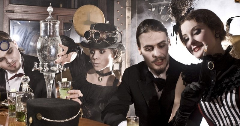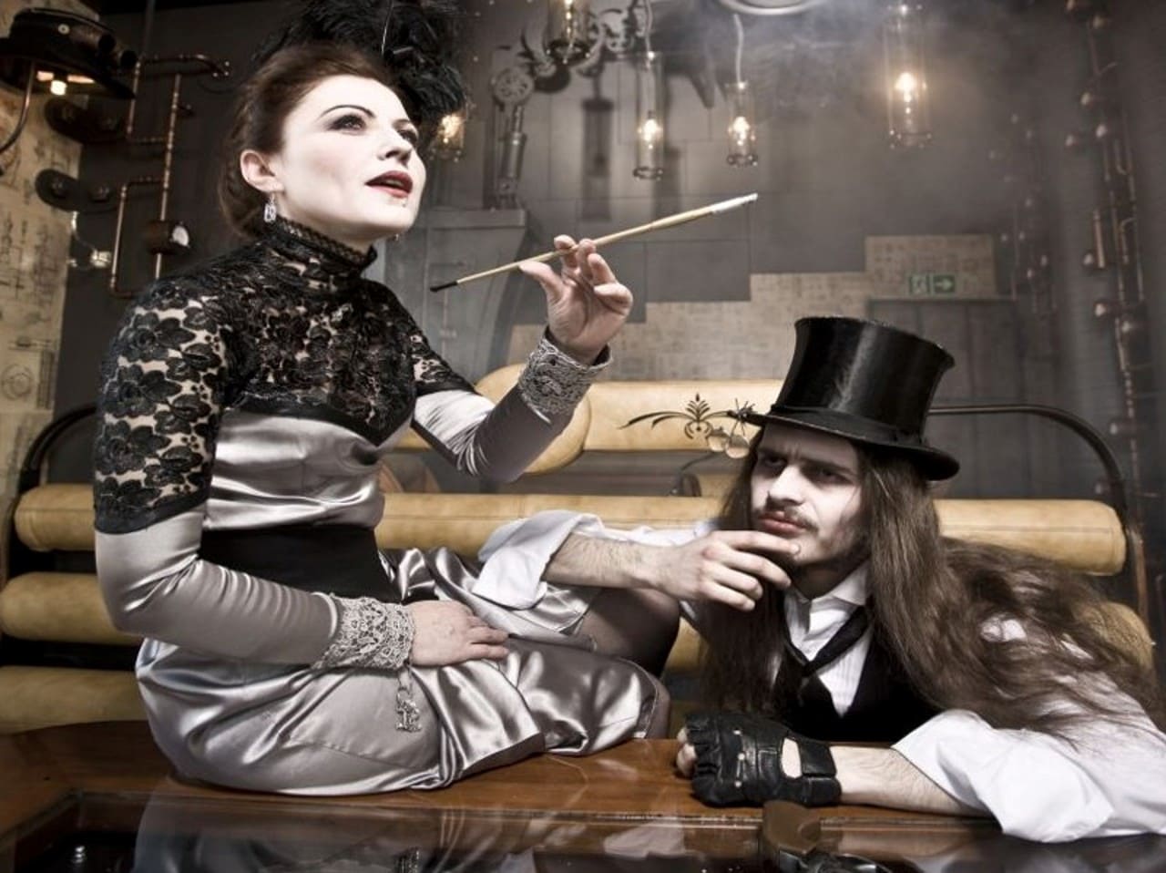 Les Steampunks aiment prétendre qu’ils vivent dans une ère victorienne futuriste avec des touches de cosplay, usant et abusant massivement de sessions multijoueurs en ligne et de maquillages et coiffures “emo”..., pour vous en faire une image, pensez au résultat si Mark Twain et Disney auraient eu un beau-fils roux et athée…