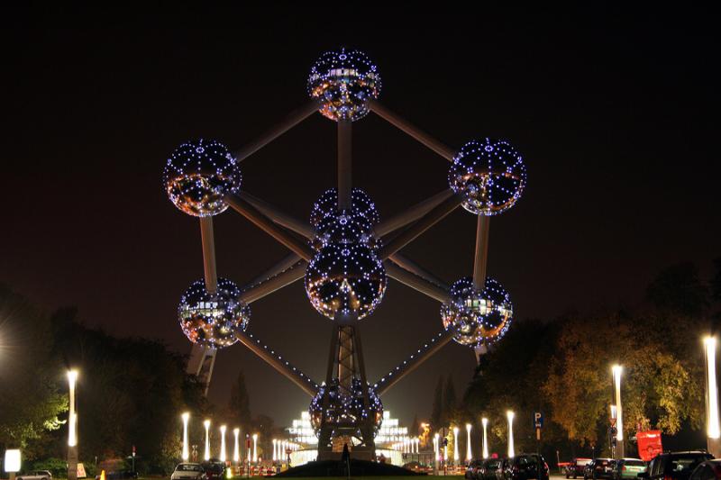 Il faudrait en rajouter une ) reliés par des tubes d’aciers, conçu par des belges, il faut le dire, Waterkeyn, l’ingénieur, et Polak, l’architecte : l’Atomium !