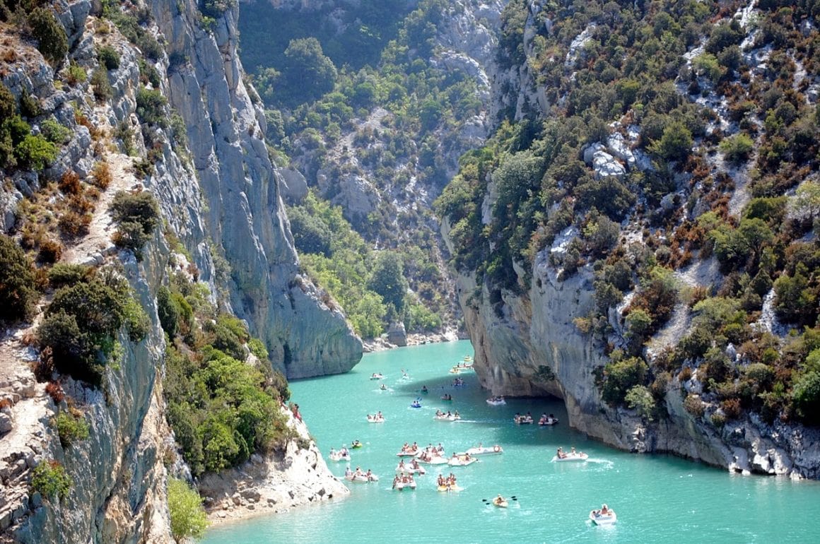 Pour une sortie en famille un brin moins rock’n’roll, aventurez-vous dans le Grand Canyon du Verdon en canoë depuis le lac de Sainte-Croix…, un aller-retour d’une dizaine de kilomètres accessibles à tous permet de sa balader sur la nappe d’eau bleu turquoise qui arrose le pied des hautes falaises…, cette portion du Verdon peut néanmoins être congestionnée durant la haute-saison estivale ; préférez alors le Bas Verdon, en aval du lac.