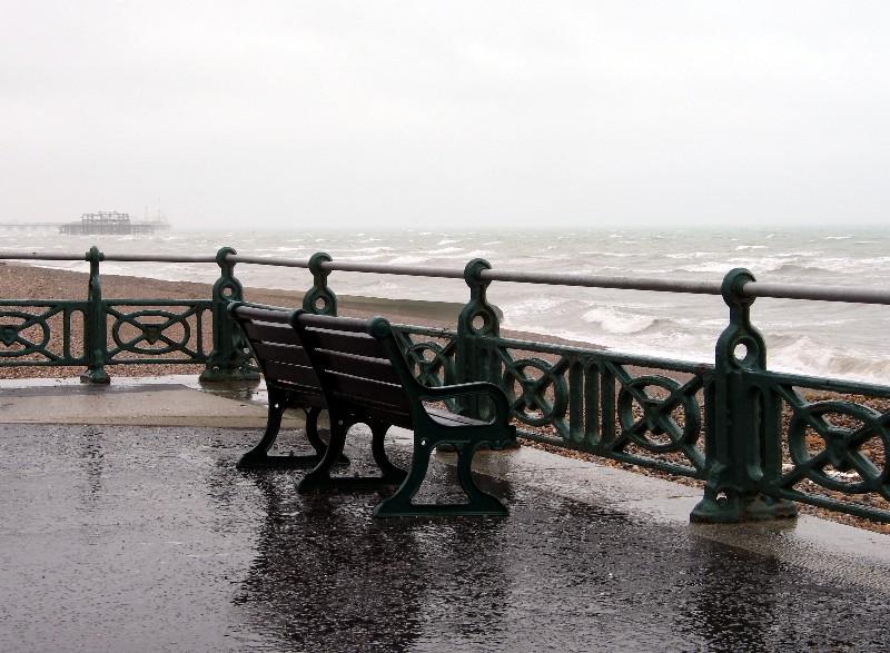 Non, je n’ai croisé personne, il pleuvait dru, la mer était en tempète…, les cabines de plages multicolores étaient closes, pas de touristes obèses à T-shirts estampillés “I love Brighton“…
