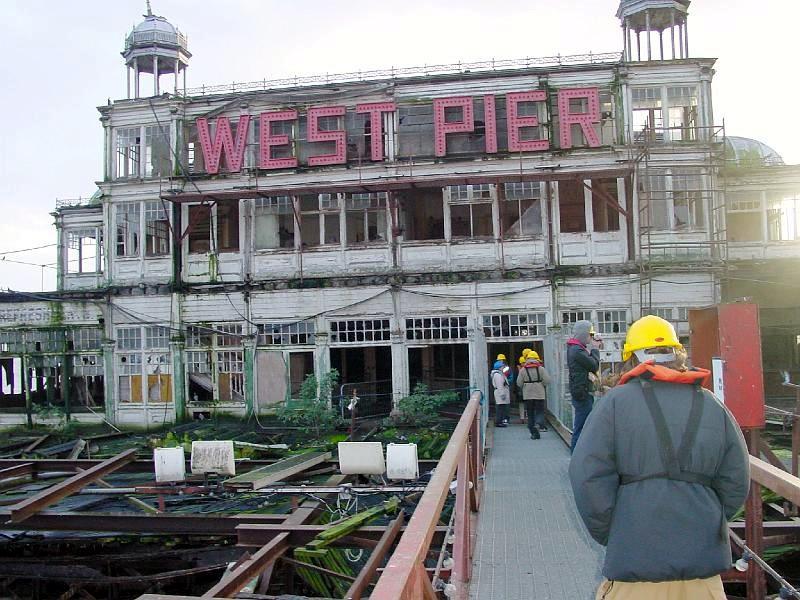 The “West Pier” a ensuite été coupé de la côte (en partie par la pose de fils-de-fer-barbelés… et cela délibérément pour des raisons de sécurité), mais des visites régulières de celui-ci ont malgré-tout perduré jusqu’à ce que la structure subisse un grave effondrement partiel…