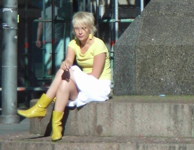 Elle me demande de l’attendre dans une rue adjacente, sous un grand porche…