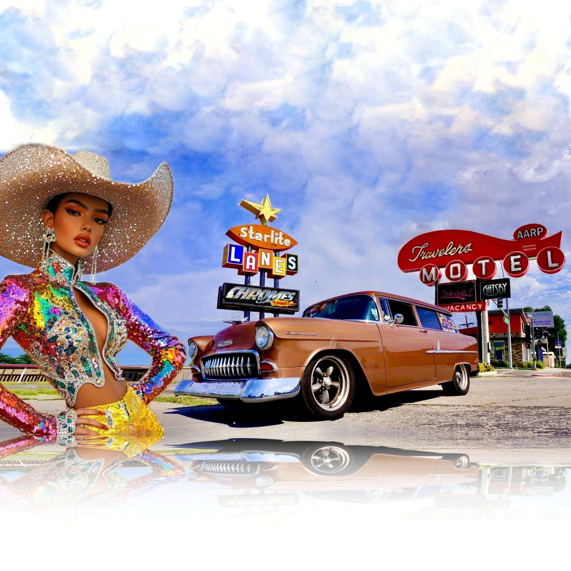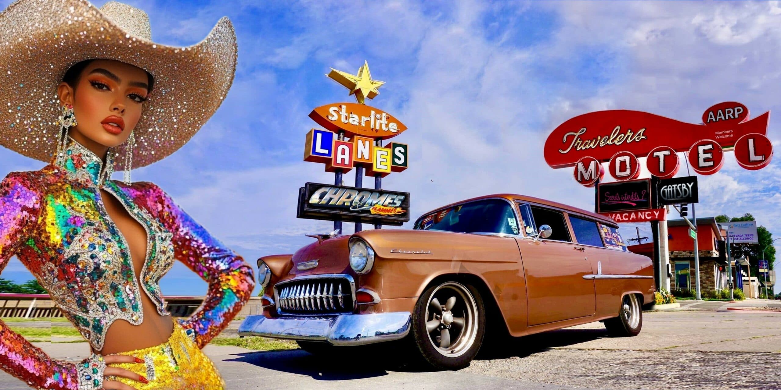 Ils constituaient la route la plus directe à travers les États-Unis. Jeff et Barbara aiment stopper leur Chevrolet’55 près de ces motels emblématiques qui jonchent le paysage et réconfortent les voyageurs fatigués d’une journée de voyage. Jeff et Barbara préfèrent toutefois emprunter la route à deux voies, mais il s’écartent également complètement de l’asphalte pour voir une partie des États-Unis bien au-delà des routes pavées d’Amérique.