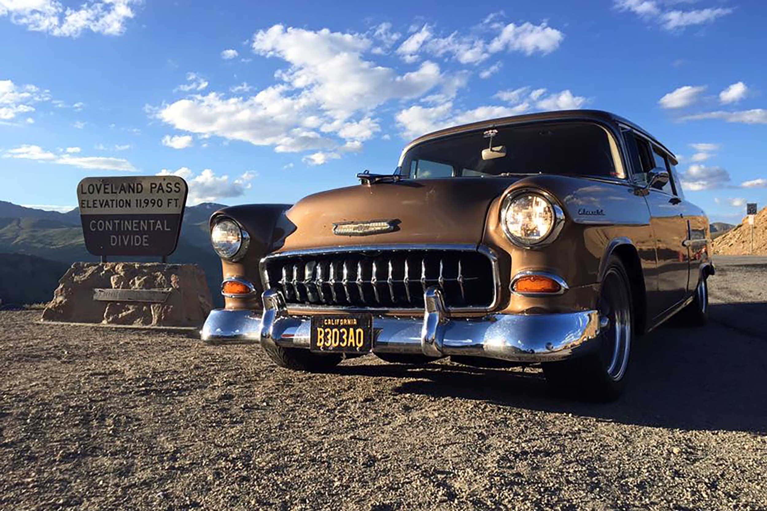 La Chevrolet’55 de Jeff et Barbara c’est avoir la bonne attitude, ce qui est primordial lorsque vous prenez la route dans n’importe quel véhicule plus ancien… À ce jour, Jeff rapporte qu’il a parcouru plus de 100.000 miles avec la voiture depuis qu’il la possède. Un câble de compteur de vitesse cassé a empêché le compteur kilométrique de fonctionner pendant un certain temps, il sait donc qu’il a voyagé plus que cela, mais il ne sait pas combien de plus.