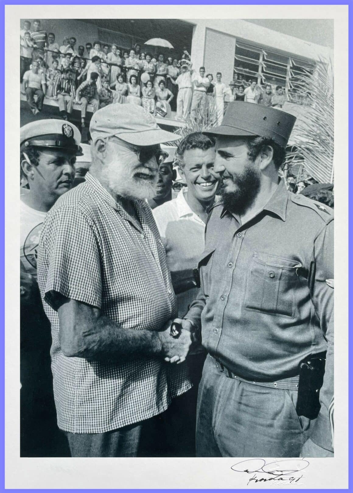 Dans “Islands in the Stream”, qui a été écrit à l’époque de Batista, Hemingway écrit : “Il y a une tyrannie absolument meurtrière qui s’étend sur chaque petit village du pays”... Cependant, dans le même livre, un personnage dit : “Les Cubains se doublent l’un l’autre. Ils se vendent les uns les autres. Ils ont eu ce qu’ils méritent. Au diable leurs révolutions”... De son vivant, Hemingway n’a jamais ouvertement discuté s’il soutenait Fidel ou la Révolution. Après sa mort, cependant, le régime de Castro a dépeint Hemingway comme ayant été sympathique aux révolutionnaires. Castro est même allé jusqu’à dire : “Toutes les œuvres d’Hemingway sont une défense des droits de l’homme”, et a également affirmé que “Pour qui sonne le glas” avait inspiré sa propre guérilla pendant la lutte contre Batista. Il est intéressant de noter qu’Hemingway et Castro ne se sont rencontrés qu’une seule fois.