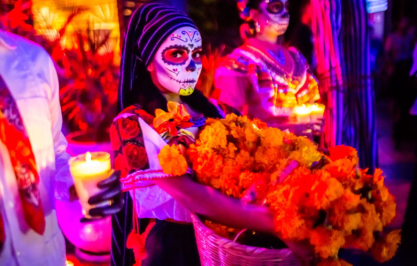 Les croyances locales pensent que les âmes des défunts sont invitées à rejoindre leurs familles et amis du côté des vivants. Différente de la Toussaint en France, “El Dia de los Muertos” de son nom originel, est une fête joyeuse et festive. Pour les Mexicains, c’est un moment de commémoration durant lequel ils sont heureux de se rappeler les bons souvenirs partagés avec leurs chers disparus. Avec la musique, les décorations et des maquillages tels que ceux de La Catrina sur le visage, les Mexicains célèbrent en couleur les disparus en hommage.