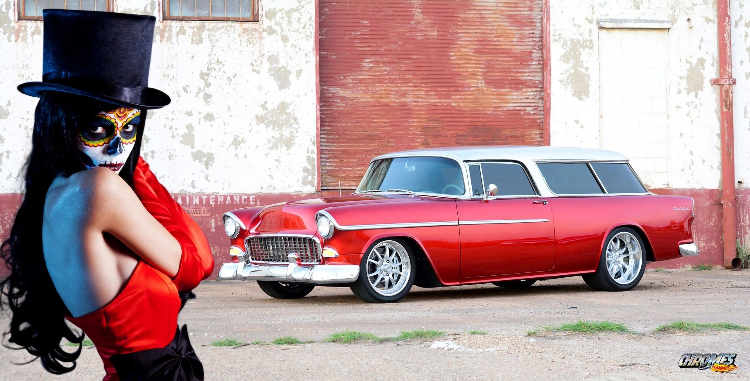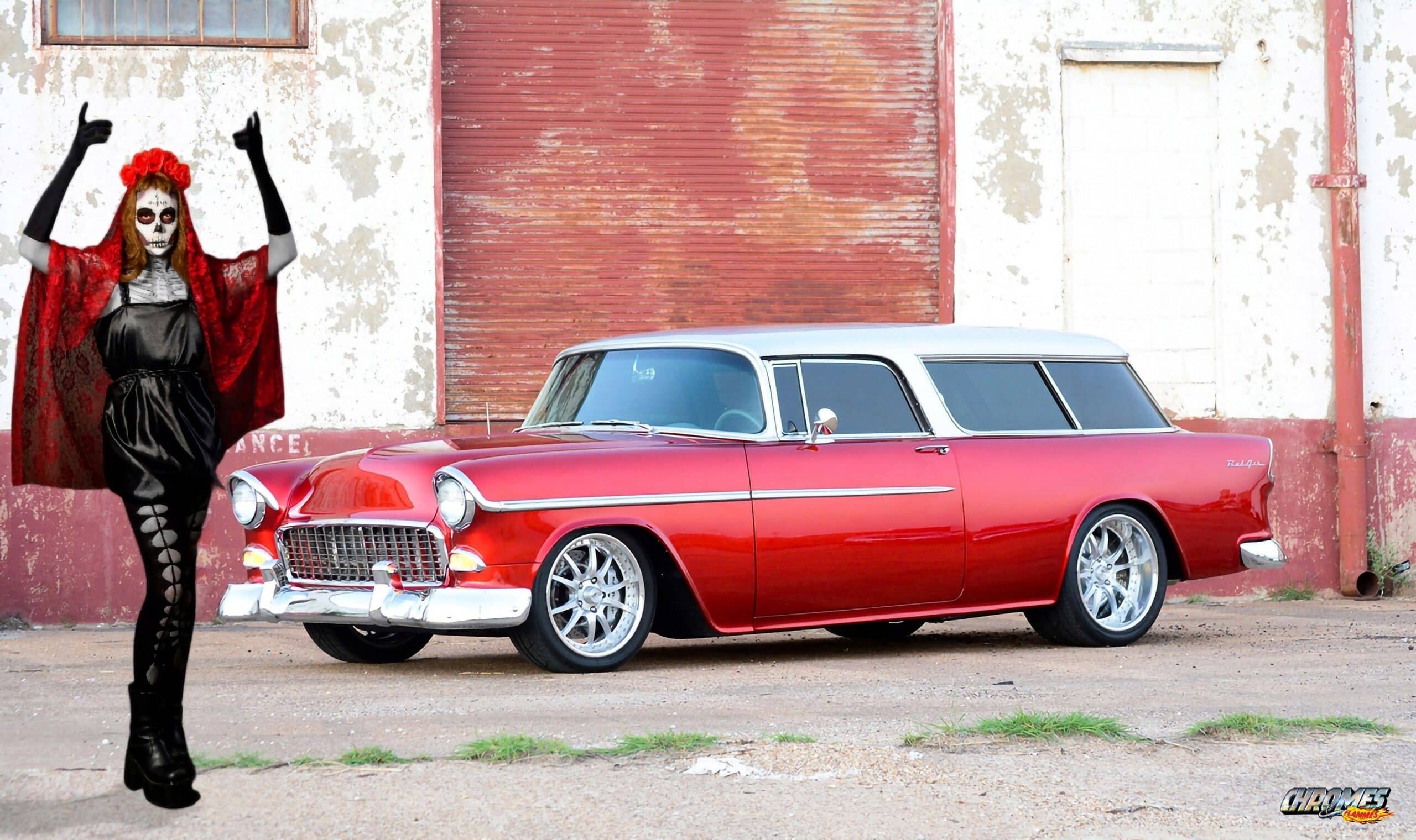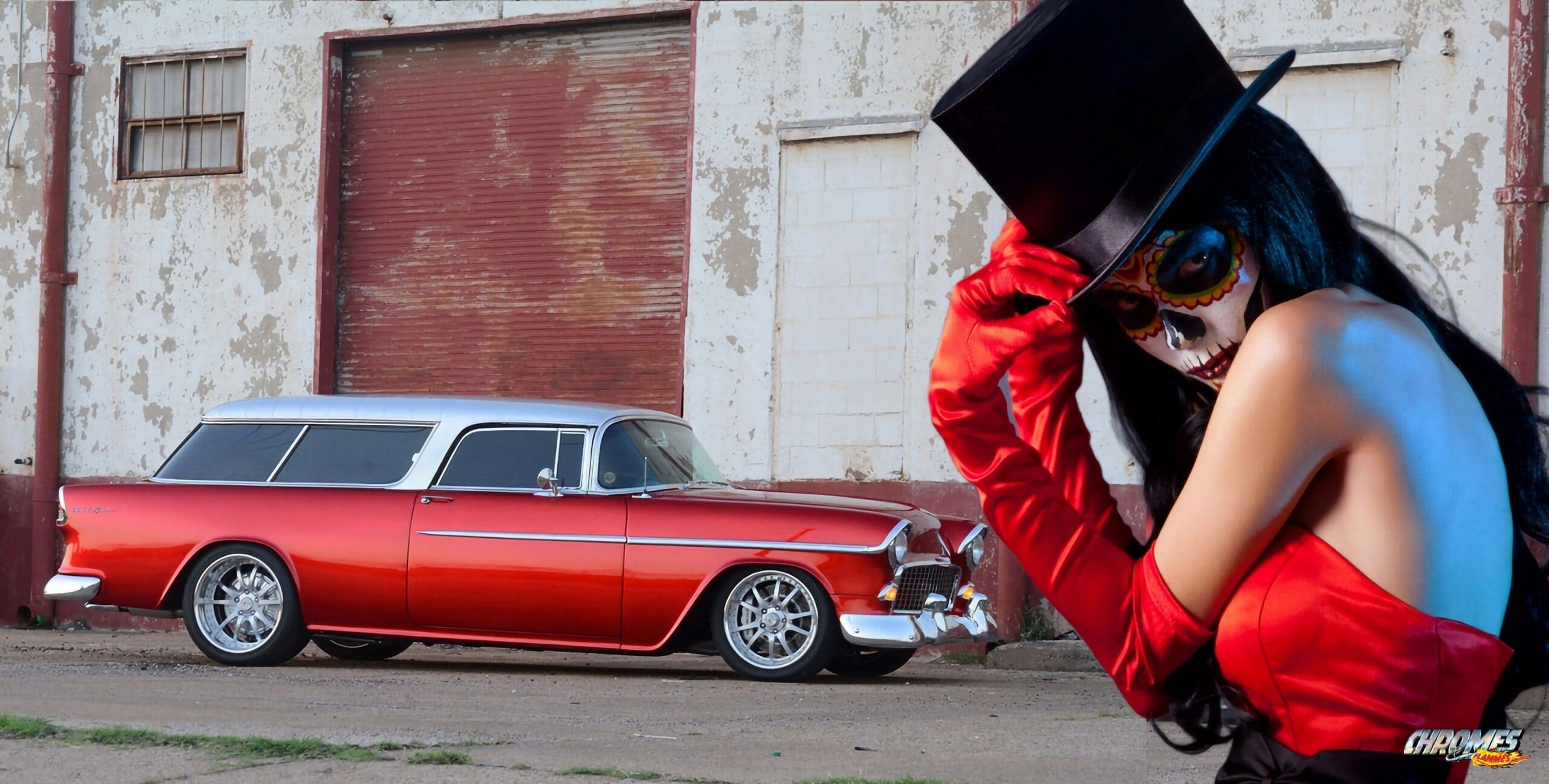 Bien, je revisse ce chapeau sur ma tête et vous invite à me suivre dans la présente nouvelle histoire qui, au départ de la Chevy-Nomad va vous faire voyager dans la fête des morts au Mexique… Vous venez de comprendre que c’est ma façon de fêter les morts du Custom et de Nitro.. Bref! Parmi les Tri-Fives, les Chevy Nomad quelle que soit l’année, ont la quotte/cote. Marc Byers, de Fort Worth, au Texas, souhaitait depuis longtemps posséder une Chevy Nomad de 1955, car c’est la voiture de ses rêves. Why not ? Certains rêvent d’une 4L, d’autres d’une Simca Versailles…
