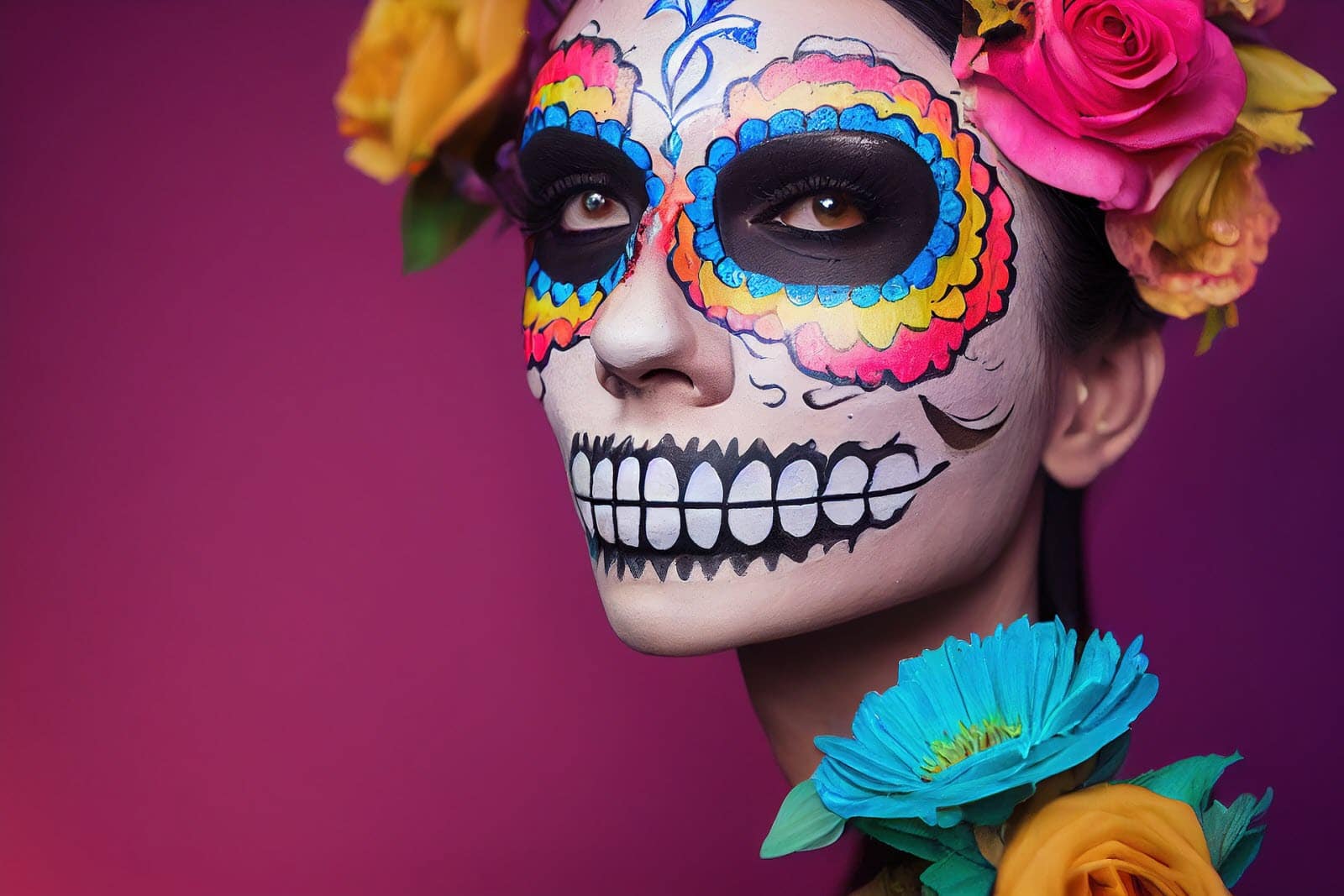 Petit à petit, grâce à ces artistes, le visage du squelette commence à devenir un symbole fort du Mexique. Non seulement pour représenter la mort, mais aussi pour montrer que c’est quelque chose qui peut être beau, esthétique et coloré. Aujourd’hui, on se maquille en Catrina pour faire partie de la célébration. Dans les rues, nombreux sont ceux qui se font maquiller dans des stands dédiés. Pas besoin de venir avec du maquillage dans vos valises, vous pourrez facilement trouver des Mexicains qui seront heureux de vous maquiller contre quelques pesos.