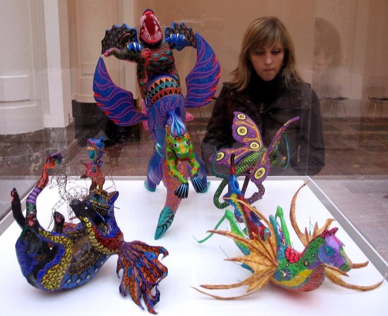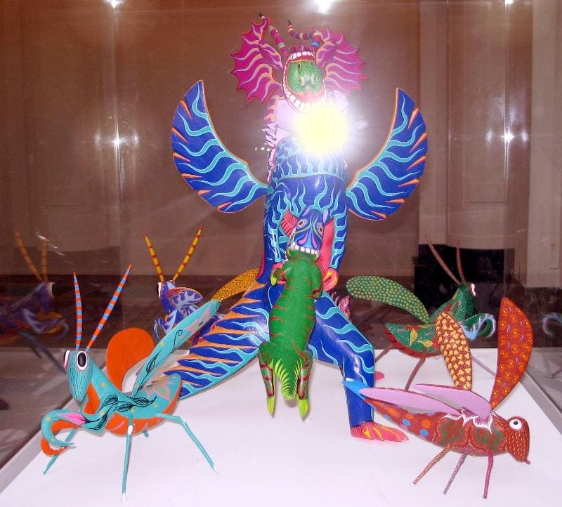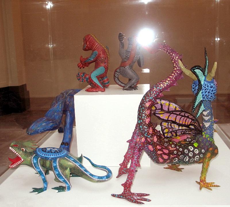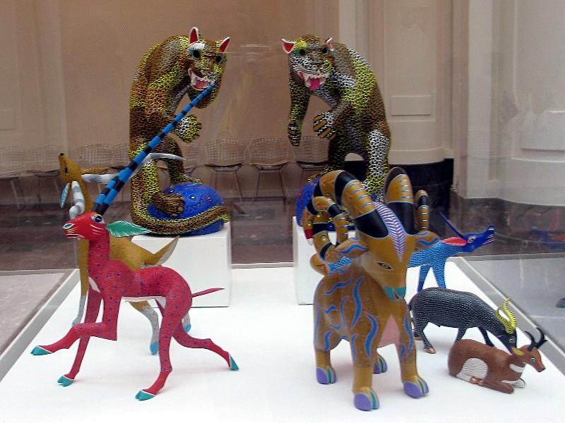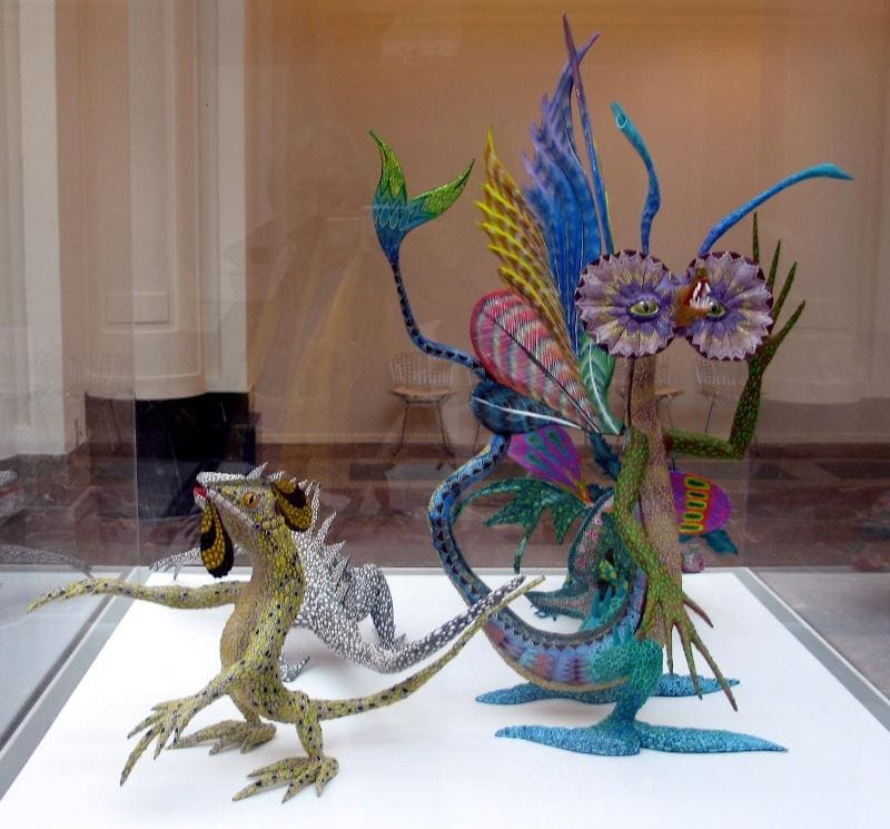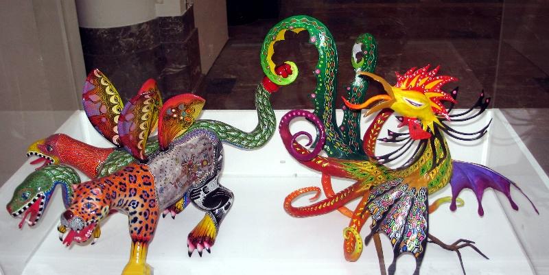 Et de l’autre côté, les Alebrijes, ces étranges animaux colorés en papier mâché et en bois.