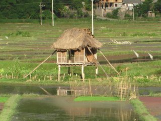 Plus loin, les rizières quadrillées se déclinent en une myriade de verts insolents où une ombre ou deux, parfois, s’égarent…