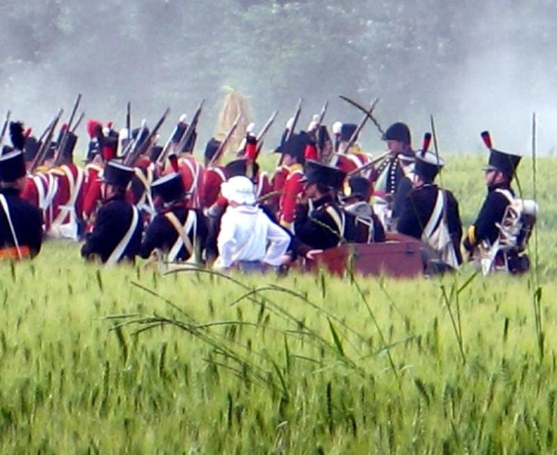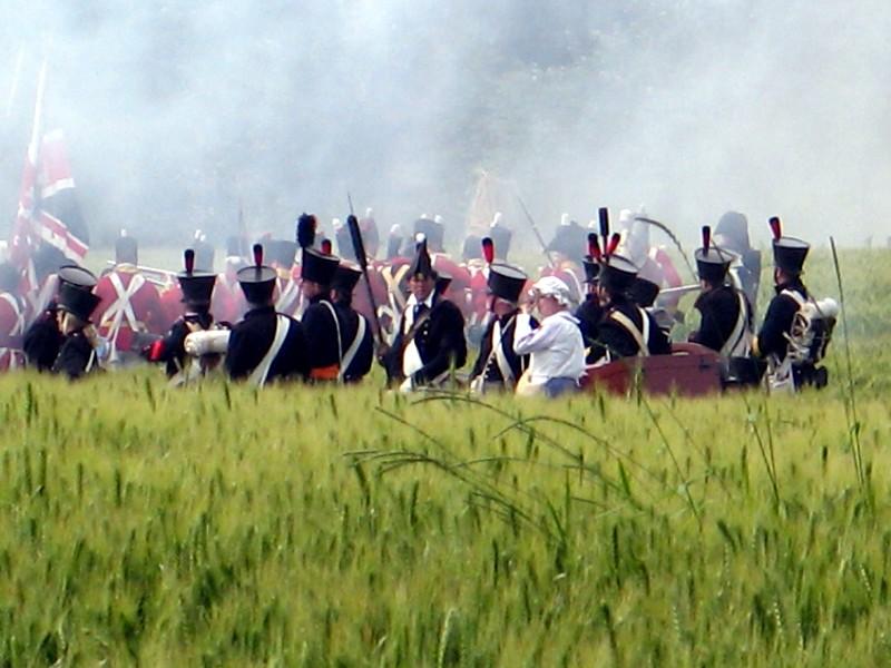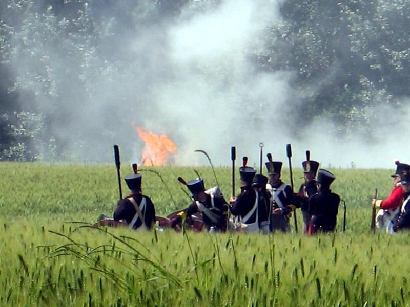 Le dimanche 22 juin se sont déroulé les différentes reconstitution des combats, dans les champs proches de la ferme d’Hougoumont (Braine- l’Alleud) entre les Alliés et les troupes françaises.