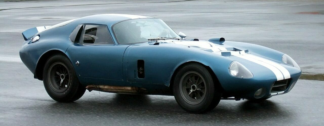 L’AC289 Sports représentait le dernier chapitre de l’histoire de la Shelby AC Cobra. Une histoire racontée d’innombrables fois à en vomir : Comment un éleveur de poulets devenu mi escroc, mi pilote de course au Texas, a réussi à monter une légende comme quoi la voiture que d’autres fabriquaient était “sa propre voiture de sport” ! Tout ça pour aller courir et montrer aux constructeurs européens (en particulier Ferrari) qu’un bon vieux moteur V8 américain installé dans une ancienne caisse bâtie sur un simple châssis (très léger) pouvait réussir contre leurs voitures de course complexes ! C’était un plan scandaleux, mais en raison d’une série improbable de circonstances et d’une chance incroyable son rêve s’est réalisé. Shelby, financé par Ford et tous ceux dont Carroll Shelby pouvait prendre un max de dollars, a monté une équipe de course qui a transformé la Cobra en légende. En 1963, sa première année de compétition, la Shelby Cobra a remporté le championnat national américain des voitures de sport et en 1964, elle participait à des compétitions en Europe à la poursuite du Championnat du Monde GT de la FIA qu’elle a failli gagner ! Mais l’année suivante, une version coupé de la Cobra dénommée Daytona, construite en Italie à Maranello à un jet de piécettes de l’usine d’Enzo (sic !) a écrasé l’opposition (une opposition modeste)…