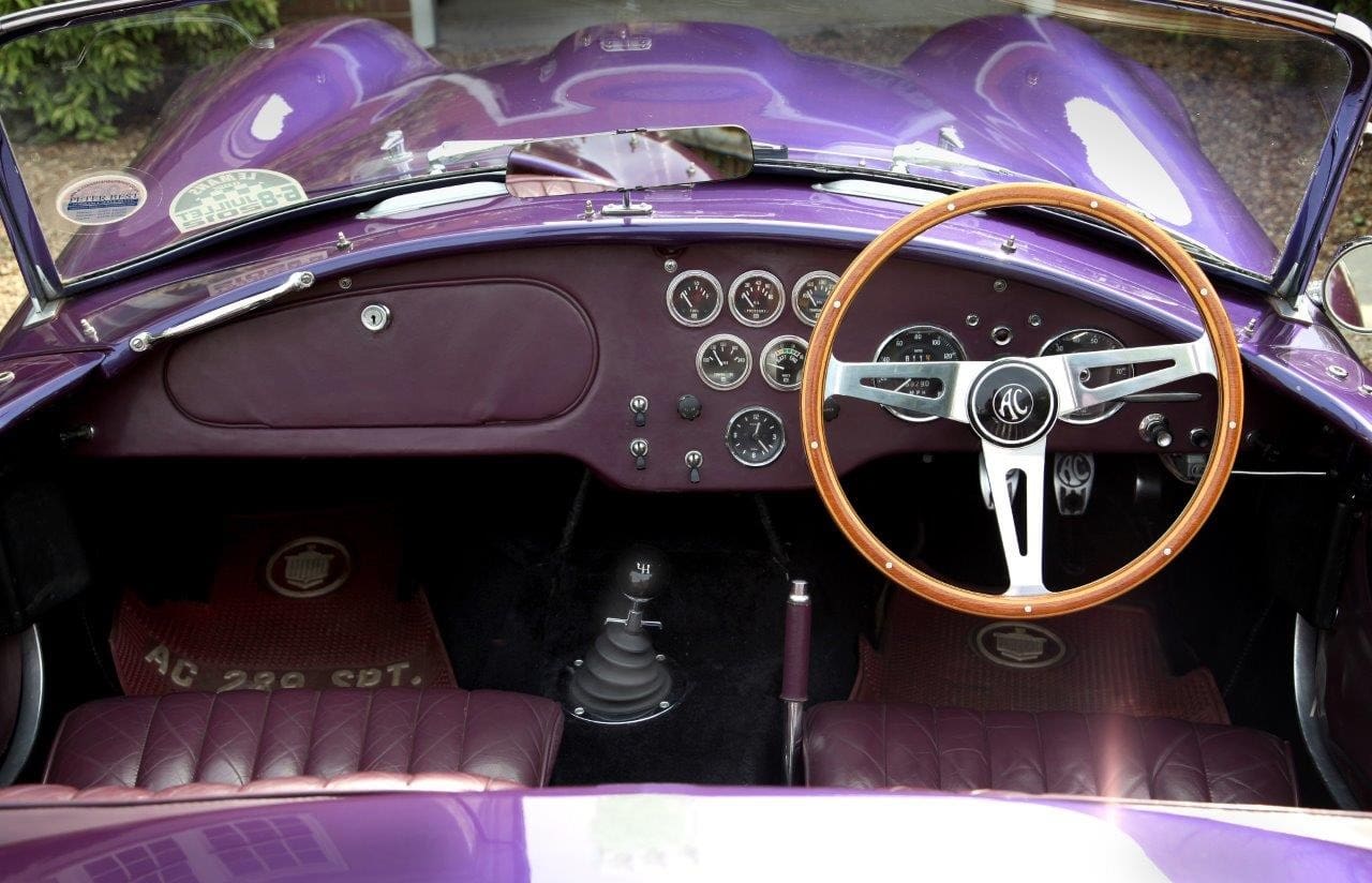 Lorsque Carroll Shelby a annoncé la première Cobra, il s’est assuré que tout le monde savait qu’il s’agissait d’un produit fabriqué à la main par AC Cars Ltd., clairement fier d’être associé à une entreprise aussi respectée, mais il a rapidement abandonné toutes les références AC et a commencé à faire de la publicité pour la voiture en tant que produit de Shelby American fabriqué aux États-Unis. Les badges AC ont été remplacés à l’exception de celui qui était trop cher et peu pratique à remplacer, le logo AC incurvé estampillé dans les pédales. Les actions de Shelby n’ont pas été appréciées par la direction d’AC Cars ; pour l’AC289 Sports, en réciprocité toutes les références à Cobra et Ford ont été omises et le logo du script AC ornait à nouveau l’avant et l’arrière de la voiture. (Étant donné que Ford avait acheté la marque Cobra de Shelby et avait des plans pour son avenir, AC n’était toutefois pas autorisé à utiliser le nom.) De manière typique, la COB6107 n’était pas la septième voiture construite, c’était la première et a été inscrite dans la liste des châssis AC comme ayant été enregistrée le 11 novembre 1965 et consignée à Len Street Engineering à Chelsea, peinte en rouge Svecia avec un intérieur noir et immatriculée GYK 768C.