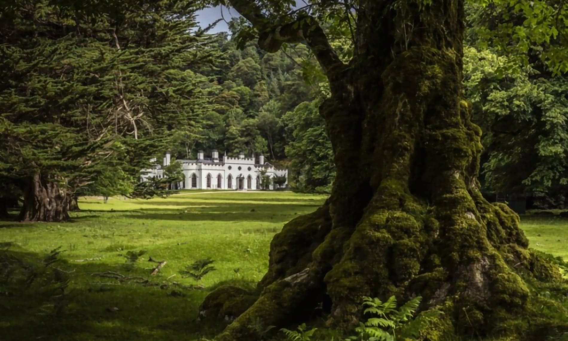 Pantalon de cricket et veston griffé Mariano Fortuny, dandy jusqu’au bout de sa barbe mandarinale déployée en éventail, Garech s’appuie négligemment sur un makila basque utilisé en guise de canne. En contrebas s’étire le manoir, silhouette menue, hérissée de créneaux à la Walter Scott, comme un château de poupée, d’une poésie toute romantique. Le chemin qui y mène dégringole à travers une forêt digne de la légende arthurienne. “Excalibur, le chef-d’oeuvre de mon voisin et ami John Boorman a été tourné ici, au milieu de cette sauvagerie qui invite à quelque culte païen”...me dit Garech Browne, ajoutant d’un trait : “Luggala était au 18e siècle une terre offerte à son épouse par Peter La Touche, banquier huguenot de Dublin. Ils y organisaient des chasses. Et ne se trouvait là qu’une maison assez primitive. Peter édifie à sa place une demeure propre à accueillir les banquets de chasse. Puis la fait remanier au début du 19e siècle pour sacrifier à la mode du néogothique”... Le manoir de Luggala est ainsi né dans un décor onirique où nul être sensé ayant compris la fumisterie des dieux et religiosités, ne songerait à vivre !