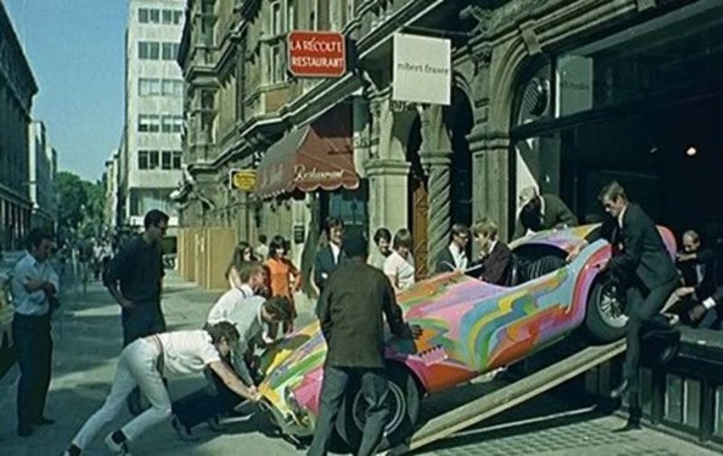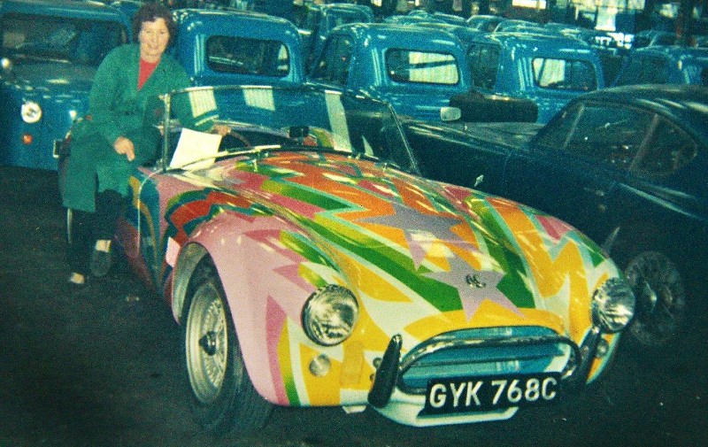 Tara Browne, membre de la riche famille brassicole Guinness, a acheté la voiture comme moyen de transport personnel, mais, pensant que la peinture rouge était un peu trop ordinaire (à l’époque, le mondain de 20 ans devait maintenir les apparences) il a décidé de transformer sa nouvelle voiture en une œuvre d’art mobile. Inspiré par les peintures murales créatives qui apparaissaient dans les magasins et les bâtiments de Carnaby-Street, il a approché “BVD Design Collective”, un groupe de trois jeunes diplômés d’écoles d’art qui étaient habiles dans l’utilisation de l’aérographe. La Cobra a été l’une des premières voitures qu’ils ont transformé, avec une Buick Electra cabriolet et une Mini !