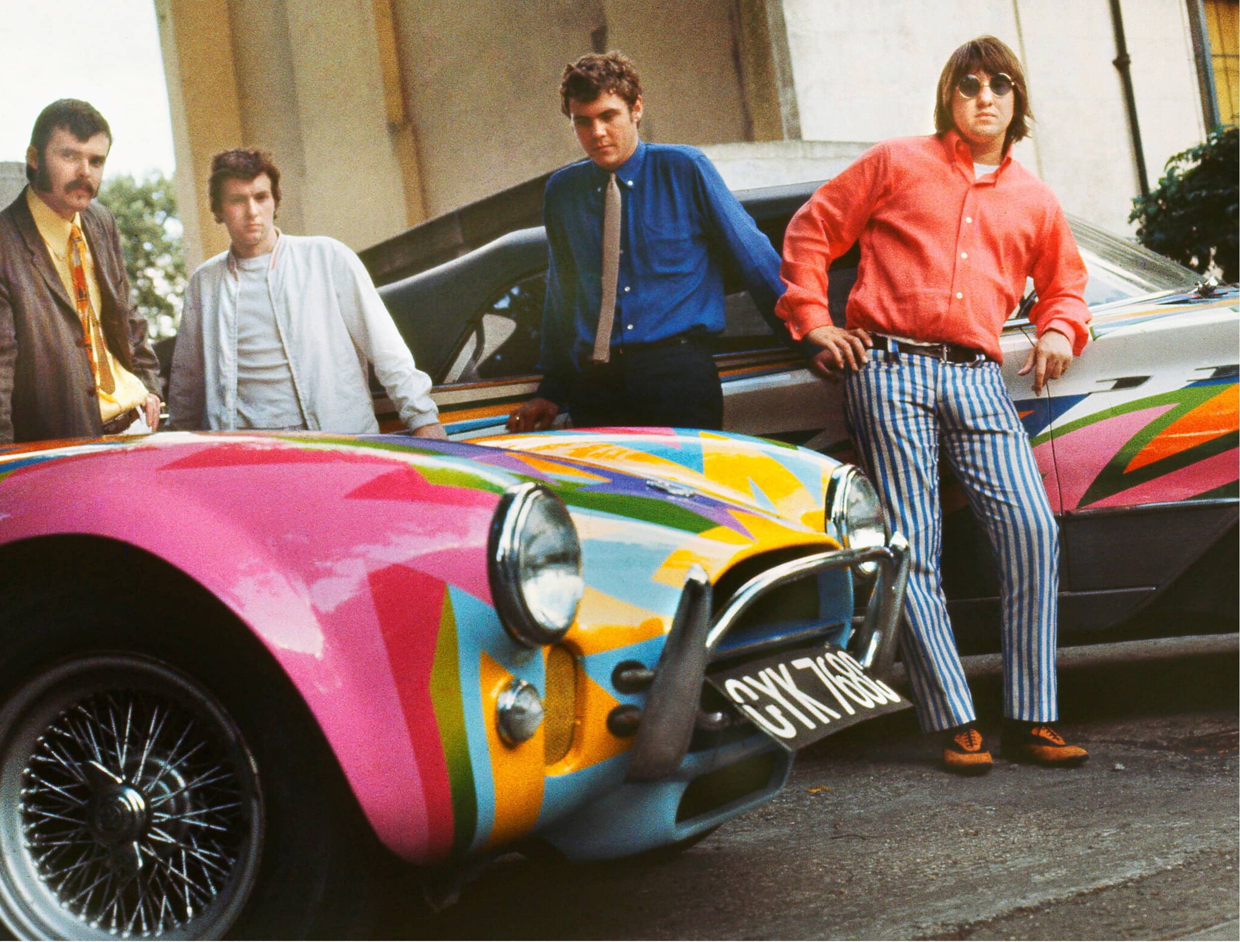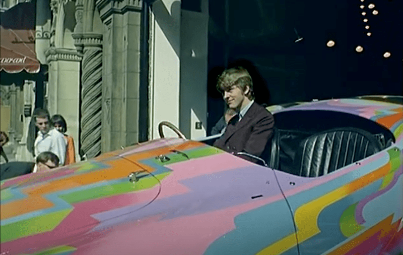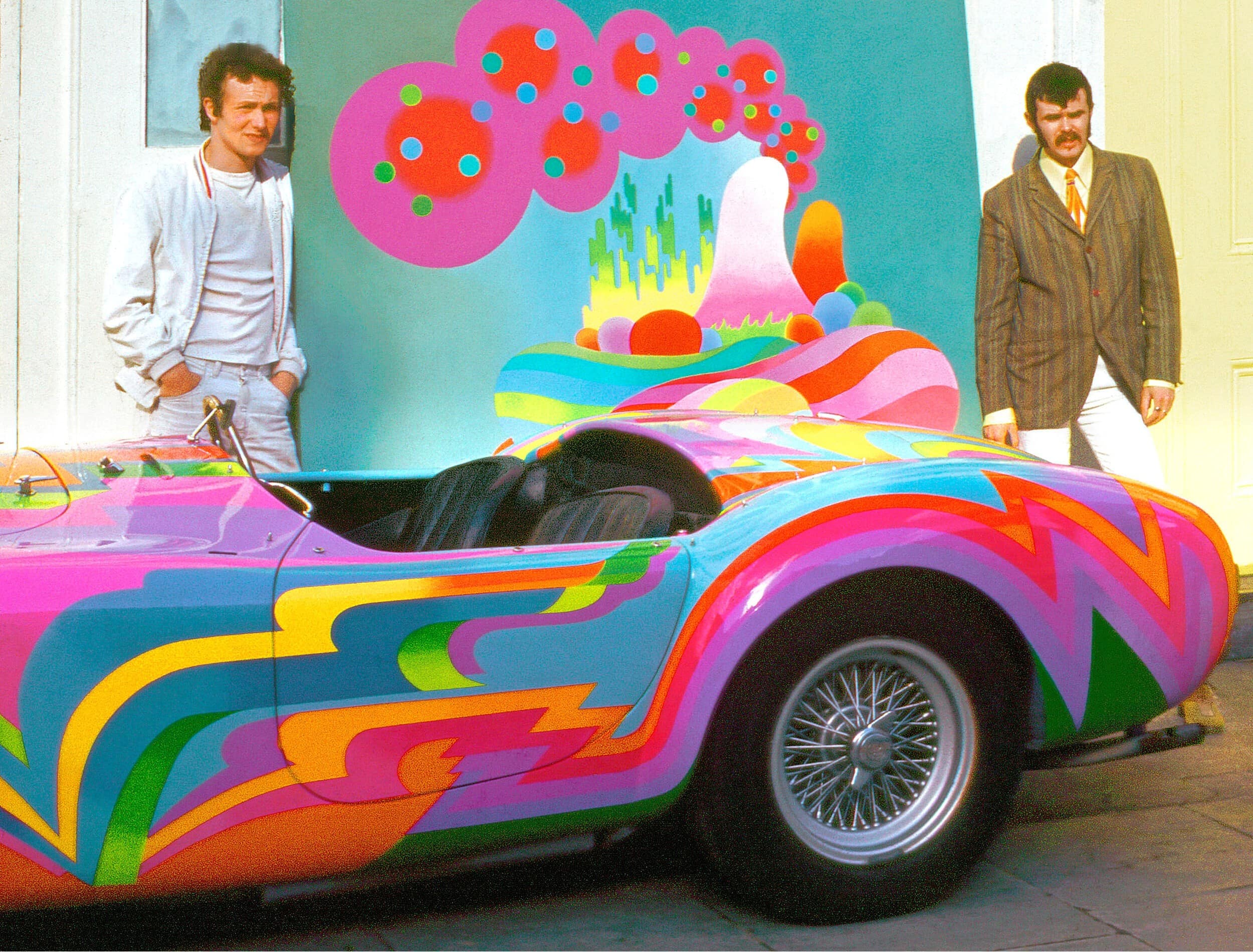 Tara Browne était un membre éminent de la contre-culture Swinging London. Étroitement impliqué dans le monde de l’art et de la musique, il était un bon ami des Beatles et des Rolling Stones. Au cours de l’été 1966, Browne a fait peindre COB6107 une extraordinaire palette de couleurs psychédéliques par le BEV Design Collective basé à Londres. BEV a été nommé d’après les fondateurs Doug Binder, Dudley Edwards et David Vaughan qui avaient étudié ensemble au Bradford Art College. Après avoir obtenu leur diplôme, Binder, Edwards et Vaughan s’installent dans une ancienne usine à l’extrémité nord de Camden Town. Ils sont rapidement devenus célèbres pour leurs spectacles de lumière et leurs peintures murales psychédéliques qui ornaient les voitures, les bâtiments et les meubles. COB6107 a été l’une des premières commandes automobiles de BEV et présentait le pop art psychédélique caractéristique du Collectif.