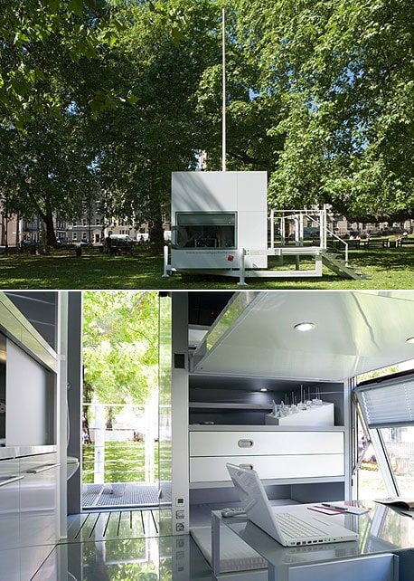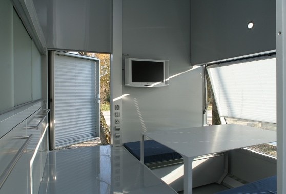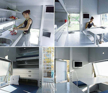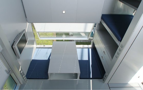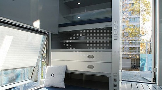 The micro-compact home (m-ch) is a 2.65m aluminium cubic pod, which integrates communication and energy systems and requires no furniture.