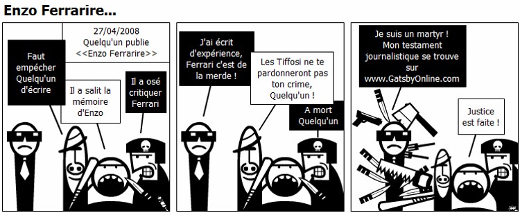 L’infortuné FAVRE a ainsi eu tout le loisir de se remémorer comme une litanie, comme une prière à Saint Enzo, la liste innombrable des faussaires, magouilleurs de tout poil, chipoteurs de bas étage, fabriquant depuis dix ans, quinze ans, vingt ans et plus…, des répliques de Ferrari sans être inquiétés…