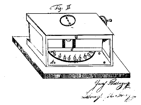 En 1843 Joseph Puchberger, originaire de Retz en Basse-Autriche, fit breveter un objectif tournant manuellement en utilisant des planches “daguerréotypes” courbées d’une longueur de 19 à 24 pouces, soit 29,26cm à 36,96cm.