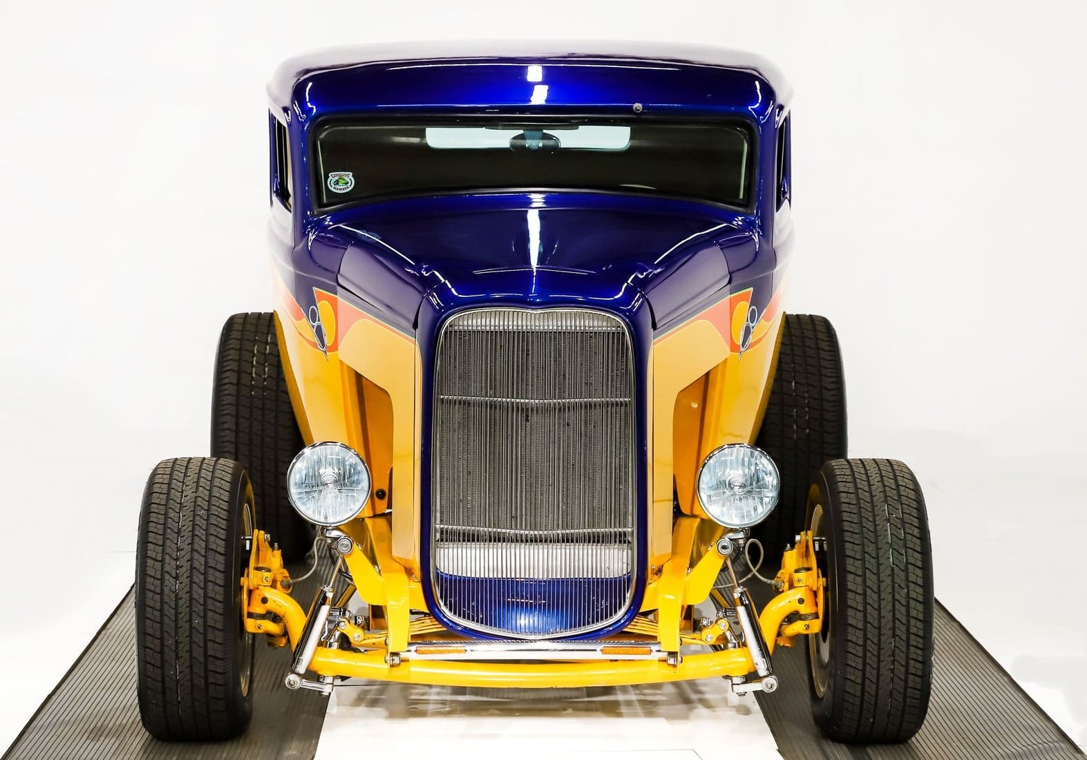 2. La coque de calandre de la Ford ’32 est devenue un objet de collection à part entière. Comparé à la bêche décontractée à l’avant d’une Ford 1933, le style de la calandre de la Deuce est subtil. Il est presque debout et se rétrécit légèrement, avec un pic rond sur le dessus et de longues barres plates verticales.