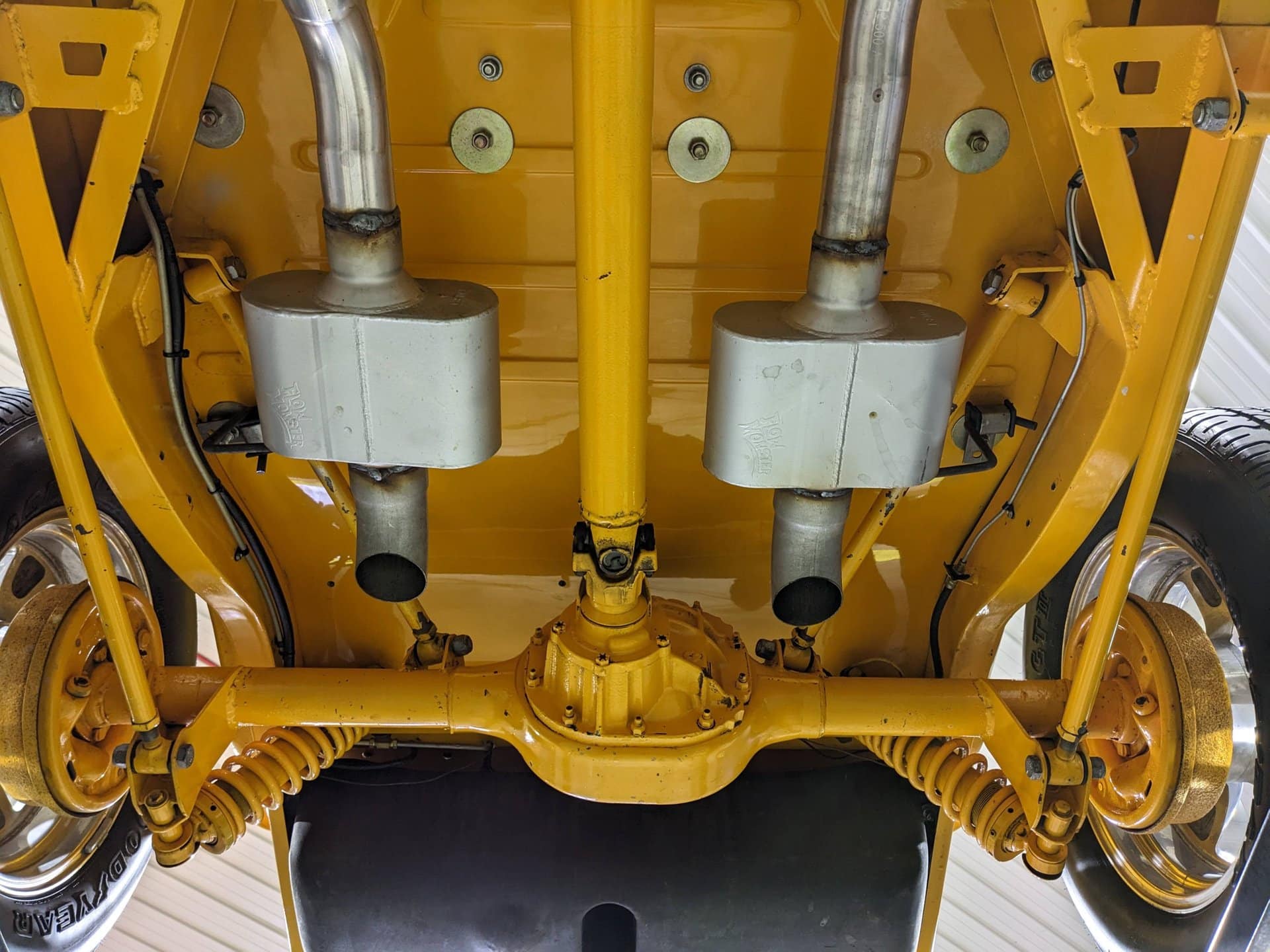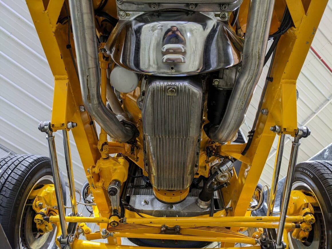 La boite Turbo 350 automatique dispose d’un refroidisseur d’huile. Il utilise une Ford rearend. Le dessous est tout peint couleur de carrosserie.