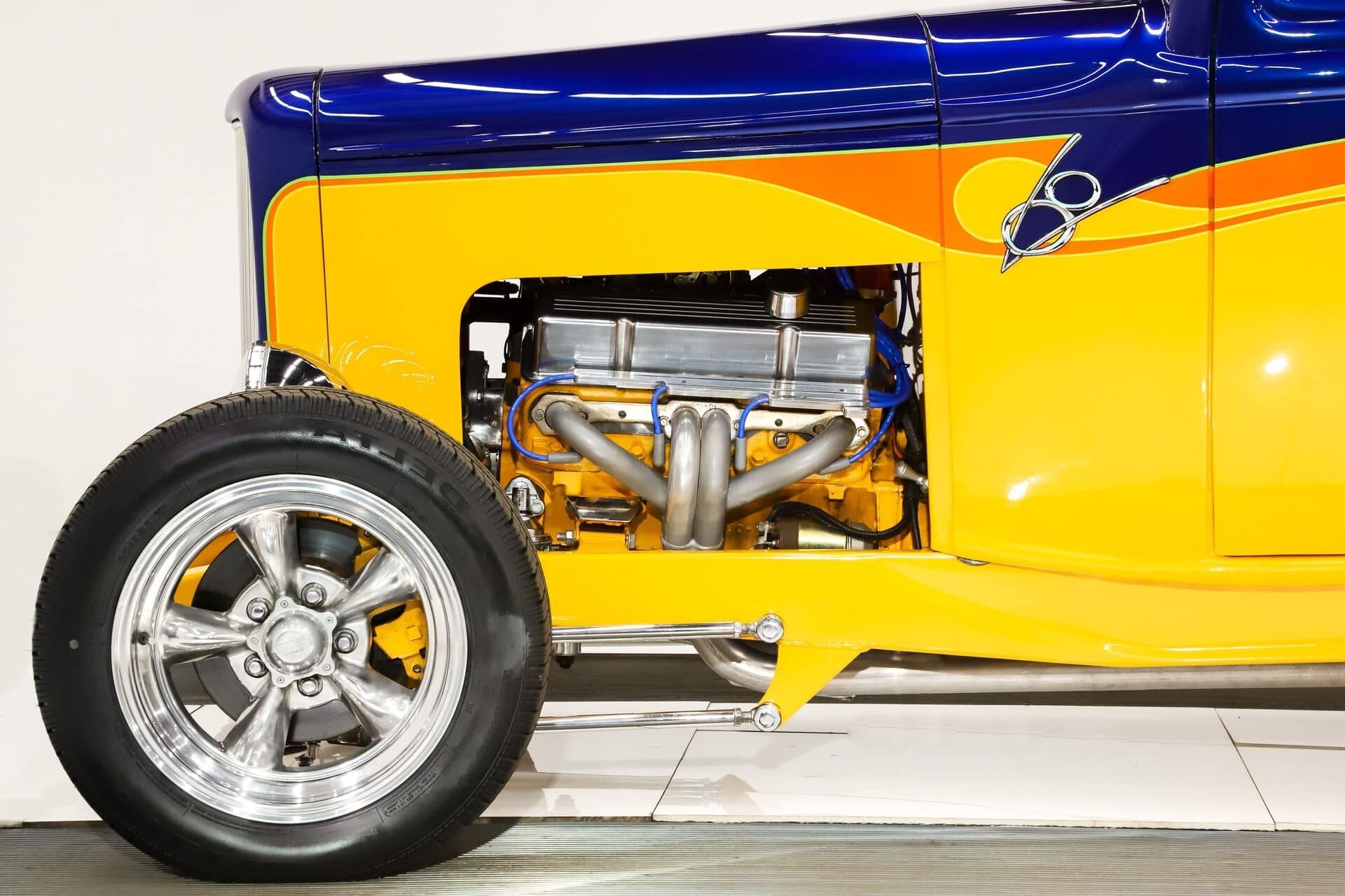 3. Il s’agissait du premier véhicule de Ford à intégrer les rails du châssis dans la conception globale de la voiture. Un pli subtil traverse la surface extérieure des rails, se terminant par un arc gracieux qui mène à l’aile arrière. Le Deuce avait toujours fière allure lorsque de jeunes rodders ont retiré les ailes pour faire la course de dragster dans la journée.