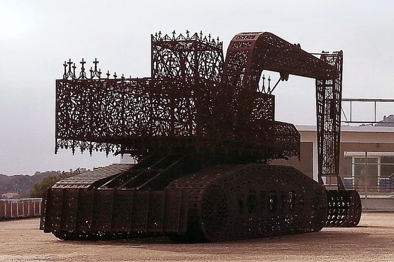 Tout est parti, sauf la grue Caterpillar (1.800.000 euros) de Win Delvoye qui n’a pas bougé d’un poil…, pourtant tout avait débuté début 2015…, six mois plus tard c’était vidé (jusque fin aout 2015 il y avait encore des œuvres)…