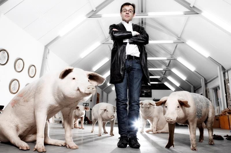 Né en 1965 en Flandre, l’artiste plasticien est connu pour ses cochons tatoués, ses camions en dentelles de métal et aussi pour son installation Cloaca, qui, avec l’apparent sérieux d’un laboratoire scientifique, reproduit le processus de la digestion.