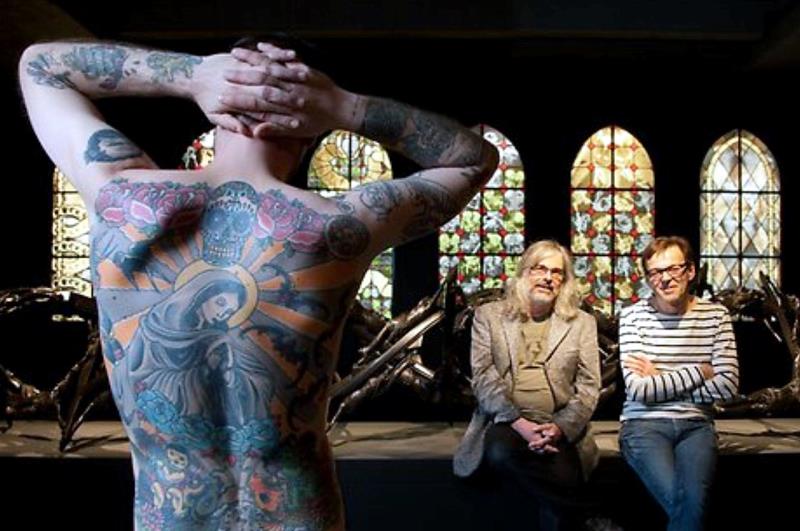 – Ce qui l’intéresse, c’est l’opposition entre l’univers populaire du tatouage, rue, morbidité de la peau, comme support non permanent… et le monde du pouvoir qu’illustre le cadre dans lequel on se trouve, bois sculptés, dorures, meubles et tapis. L’opposition entre populaire et exclusif, grand et petit, riche et pauvre…