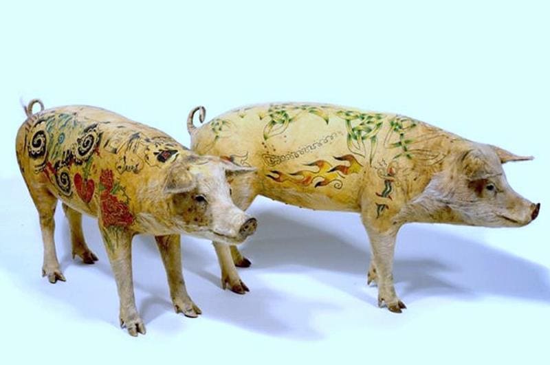 – Je suscite les questions, je n’ai pas les réponses. Et quand je tatoue des jeunes porcs, je montre ce qu’est un investissement dans l’art. Puisque l’oeuvre d’art grandit avec le porc. C’est à nouveau spéculatif. J’ai repris l’idée d’une décision de Fidel Castro qui pour montrer son avancée vers le libéralisme a permis un jour, aux habitants de garder des cochons chez eux. Avant cela, posséder des cochons était le symbole même du capitalisme…
