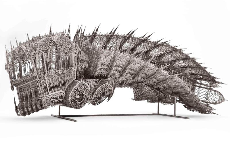 Fondant sa démarche sur l’appropriation, l’excrétion et sur le mélange des genres, des époques et des catégories, Win Delvoye digère les éléments décoratifs du gothique, de la sculpture académique du 19ième siècle aussi bien que l’imagerie populaire de Walt Disney.