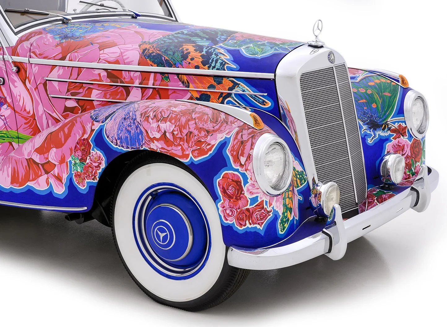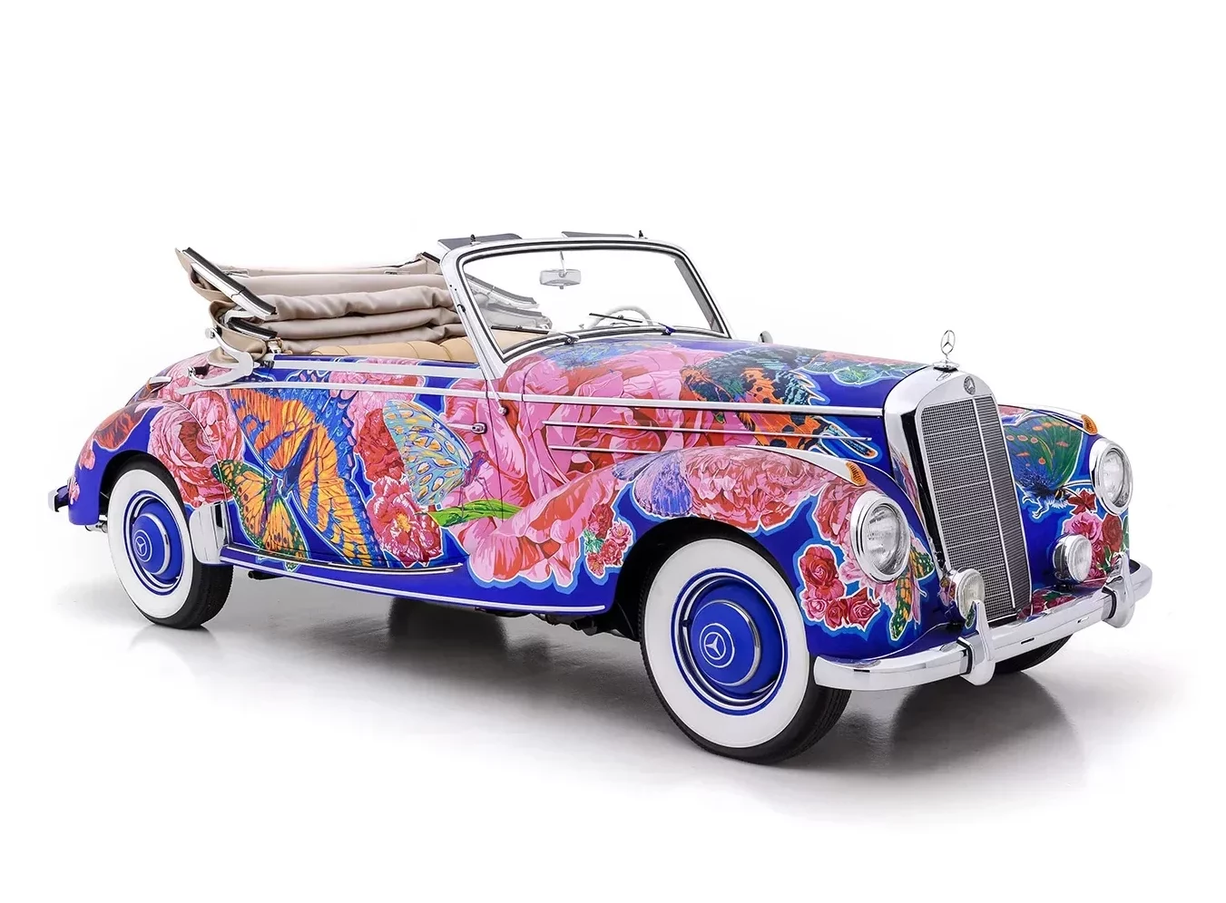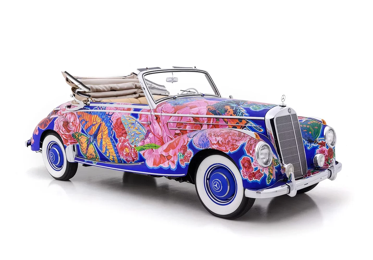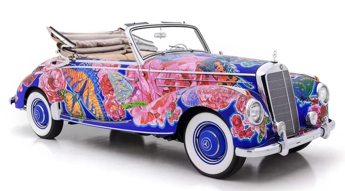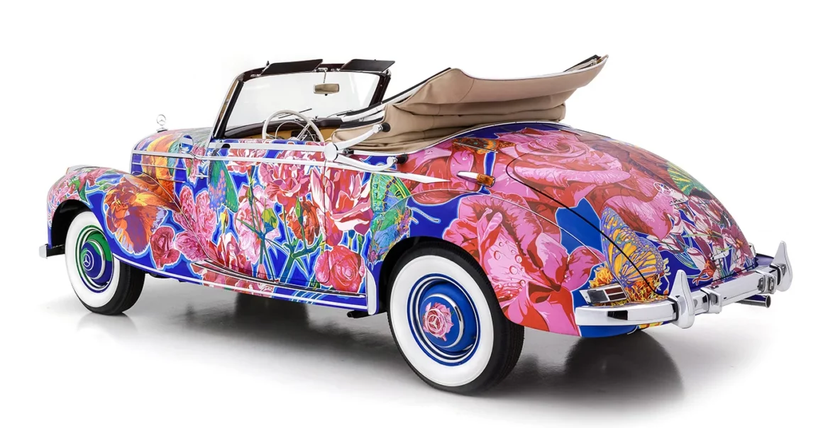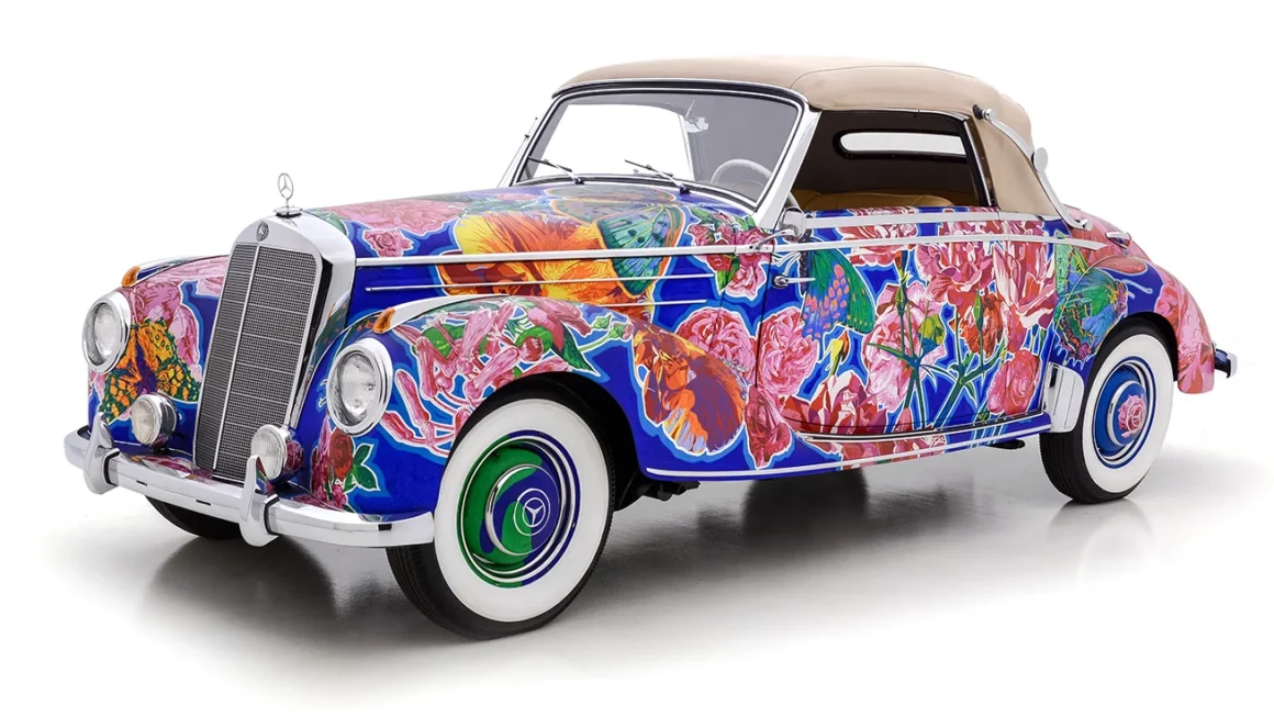 Il convient également de noter que de nombreuses expositions de Yamagata ont été organisées conjointement avec le célèbre poète américain de la “Beat Generation”, Allen Ginsberg, qui a écrit des livres avec Yamagata complétant les présentations de la série “Earthly Paradise”. Nommée “Papillons et roses”, cette captivante Mercedes-Benz 220A Cabriolet 1952 est sensée procurer une expérience visuelle merveilleusement kaléidoscopique et vivante…,