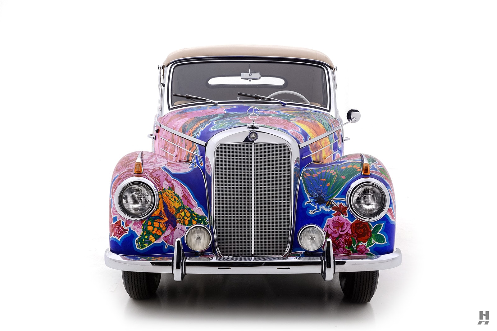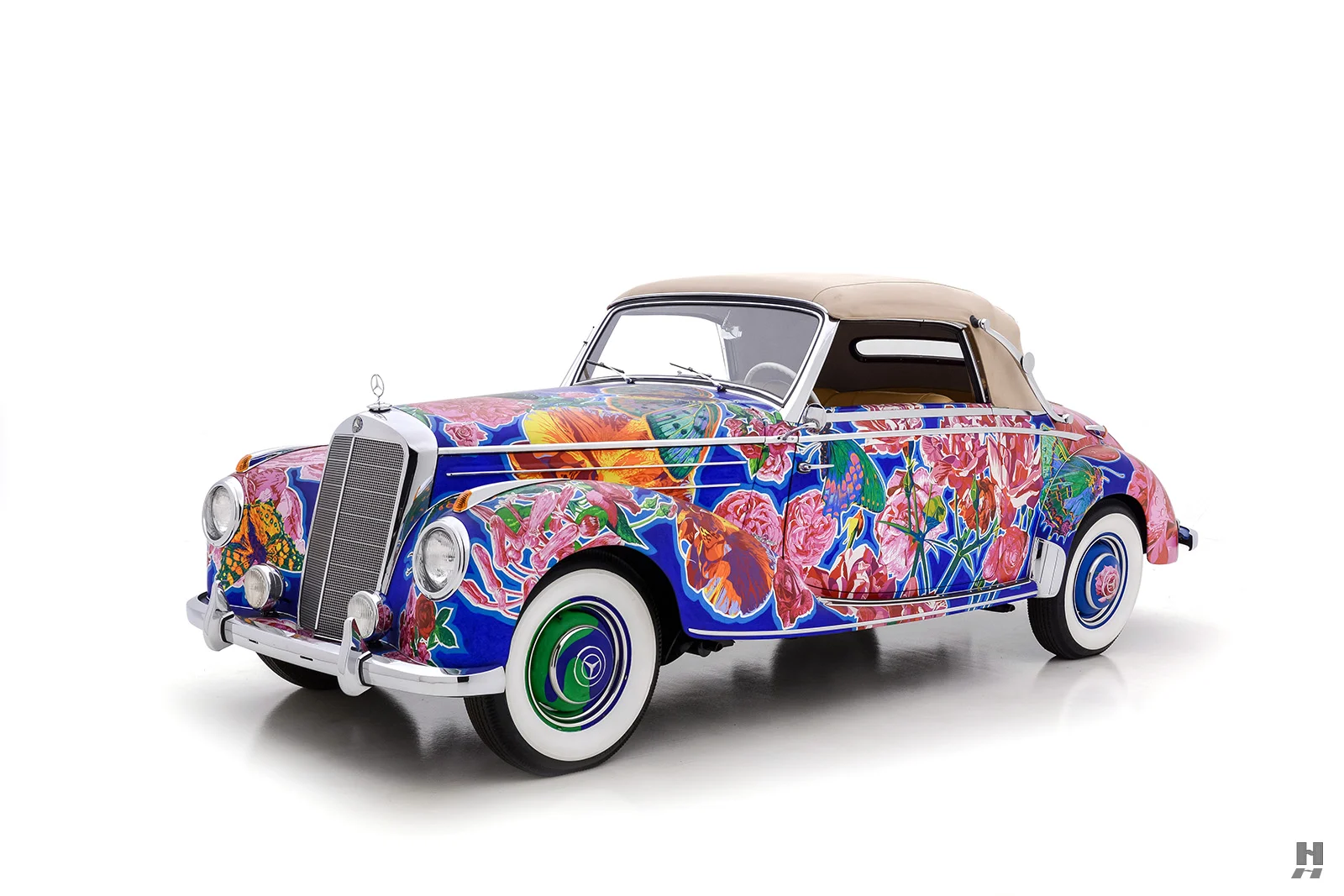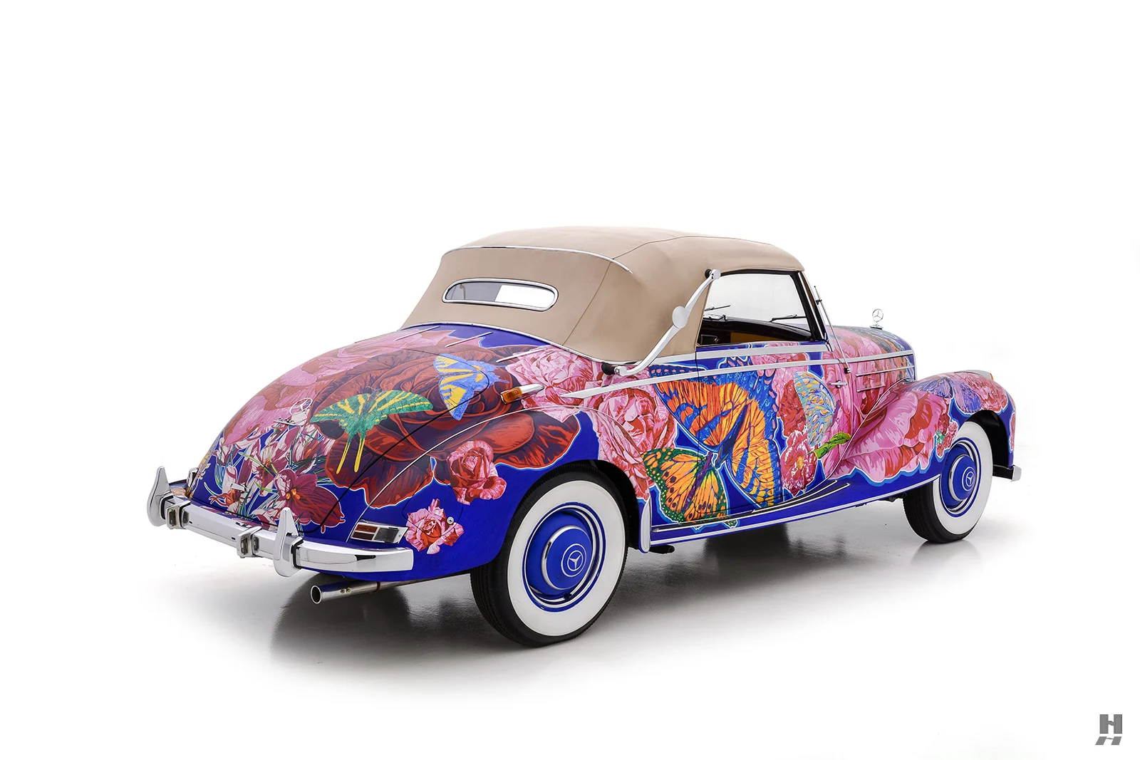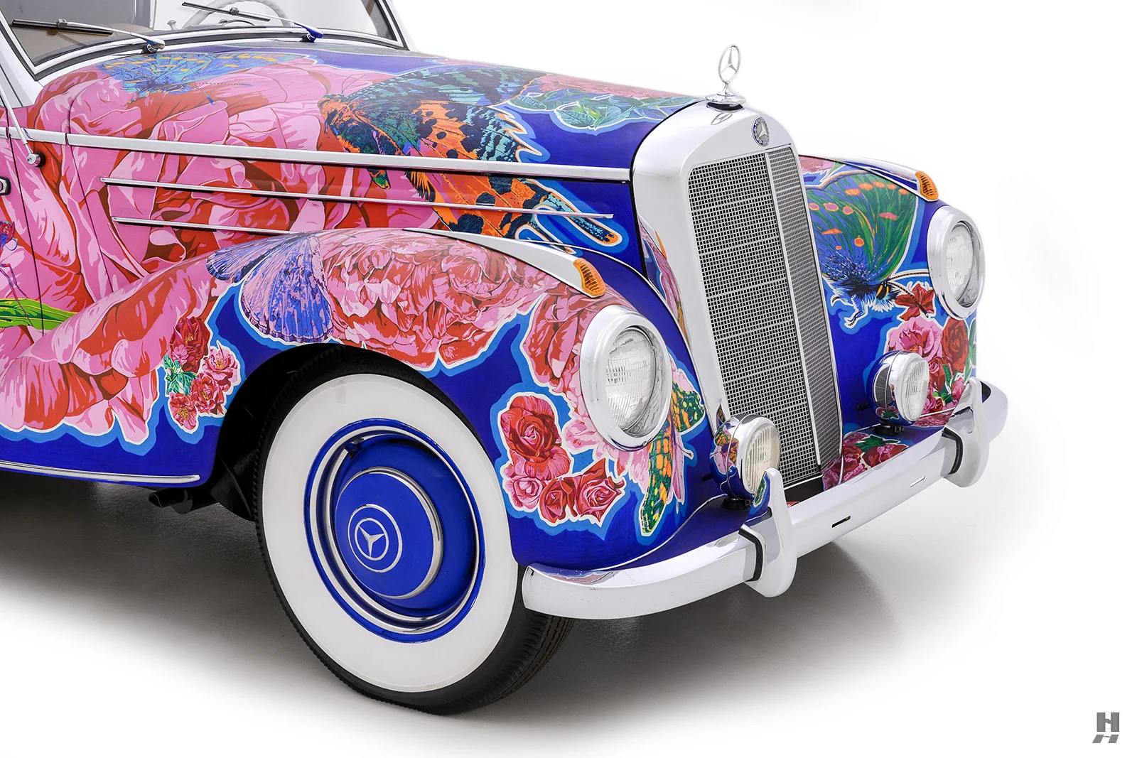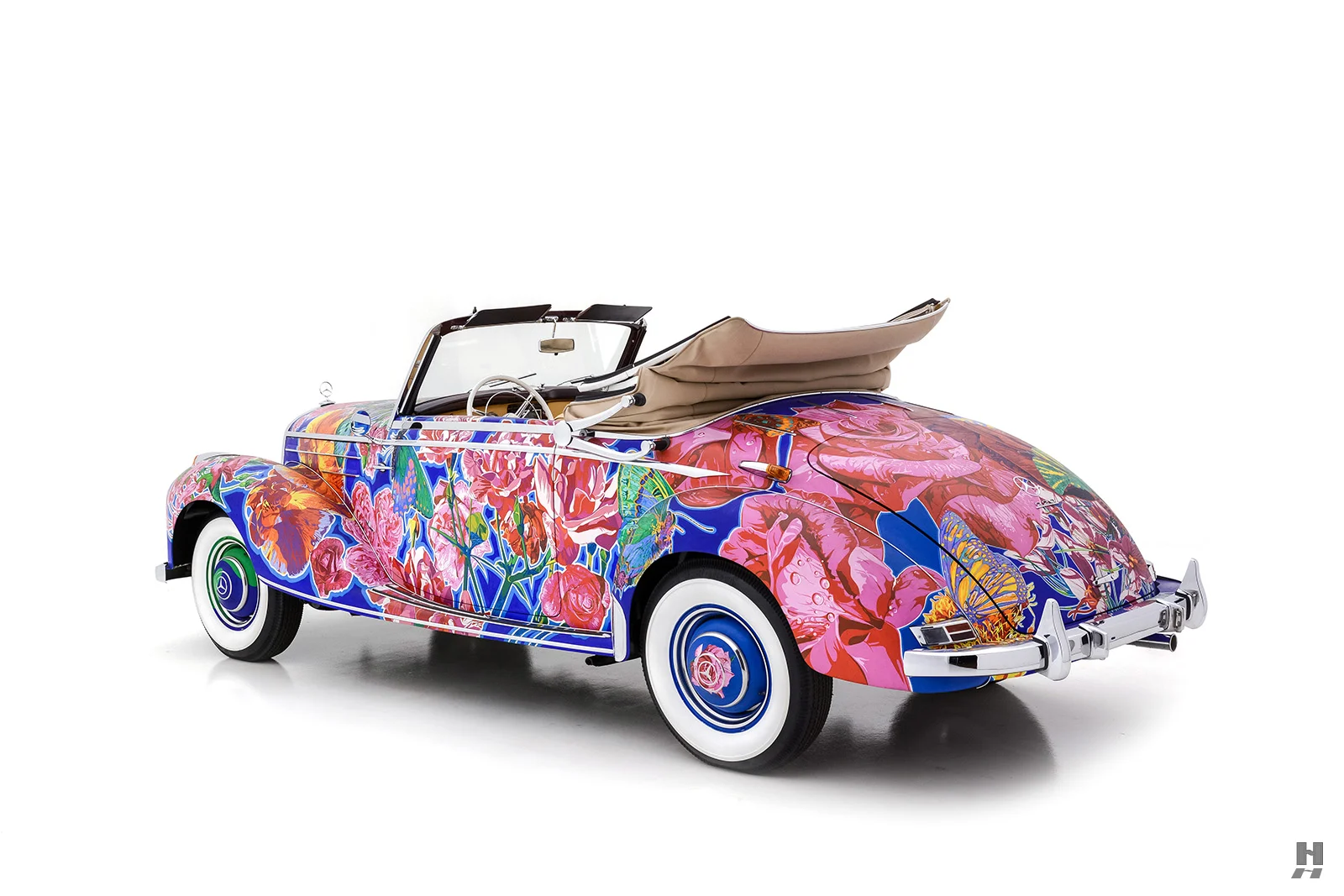Il convient également de noter que de nombreuses expositions de Yamagata ont été organisées conjointement avec le célèbre poète américain de la “Beat Generation”, Allen Ginsberg, qui a écrit des livres avec Yamagata complétant les présentations de la série “Earthly Paradise”. Nommée “Papillons et roses”, cette captivante Mercedes-Benz 220A Cabriolet 1952 est sensée procurer une expérience visuelle merveilleusement kaléidoscopique et vivante…,